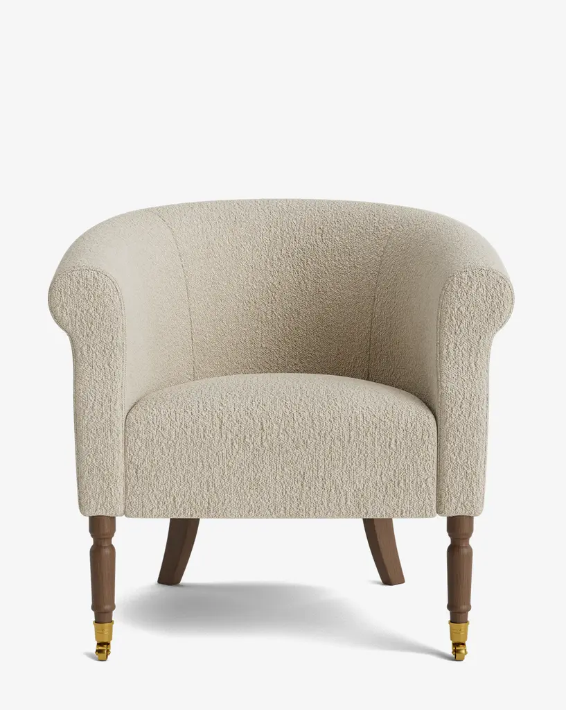 Crafted with timeless design in mind, the Clemence Lounge Chair brings together the best of both form and function in an upholstered lounge chair. From the turned legs to the traditional curved elements, this chair adds comfort and a classic feel to your living space in your choice of designer fabric upholstery.