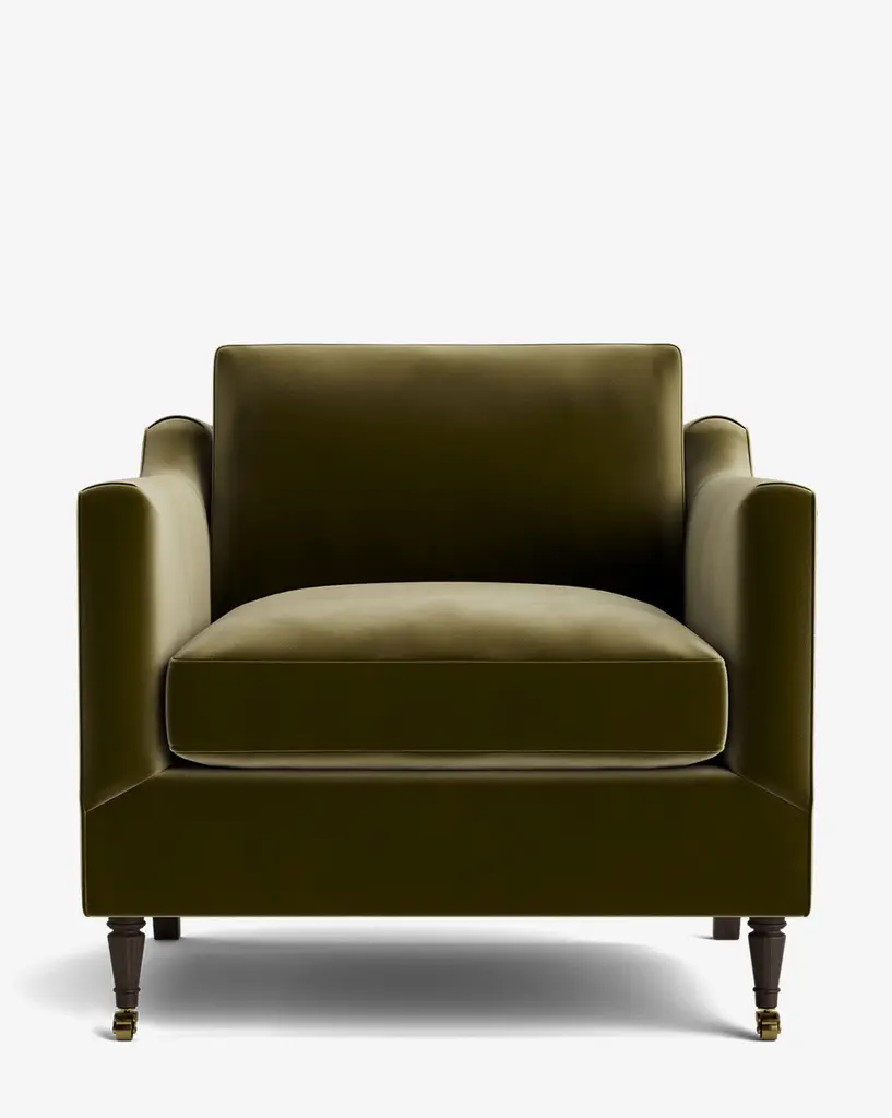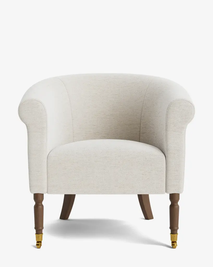 Crafted with timeless design in mind, the Clemence Lounge Chair brings together the best of both form and function in an upholstered lounge chair. From the turned legs to the traditional curved elements, this chair adds comfort and a classic feel to your living space in your choice of designer fabric upholstery.