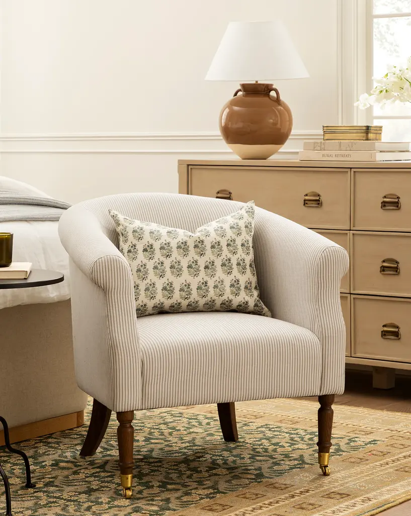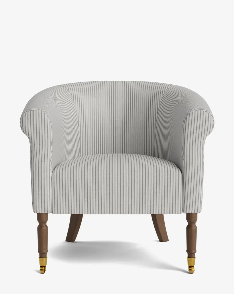 Crafted with timeless design in mind, the Clemence Lounge Chair brings together the best of both form and function in an upholstered lounge chair. From the turned legs to the traditional curved elements, this chair adds comfort and a classic feel to your living space in your choice of designer fabric upholstery.