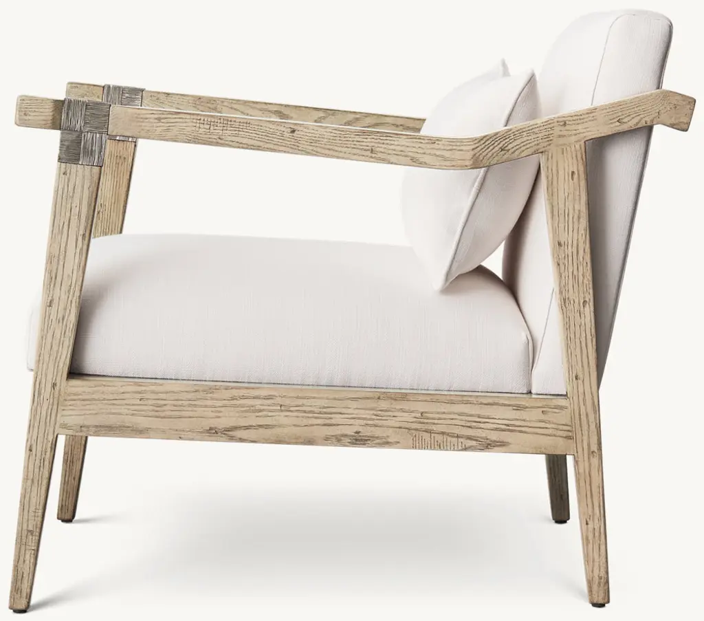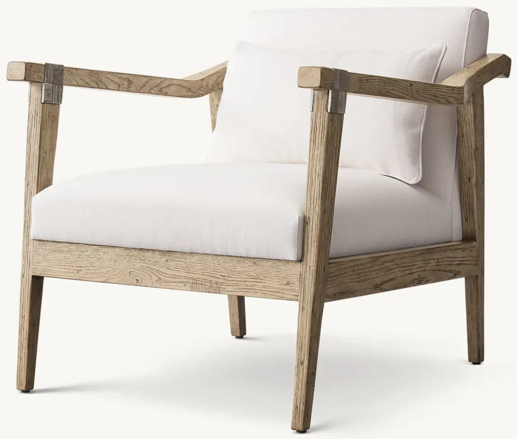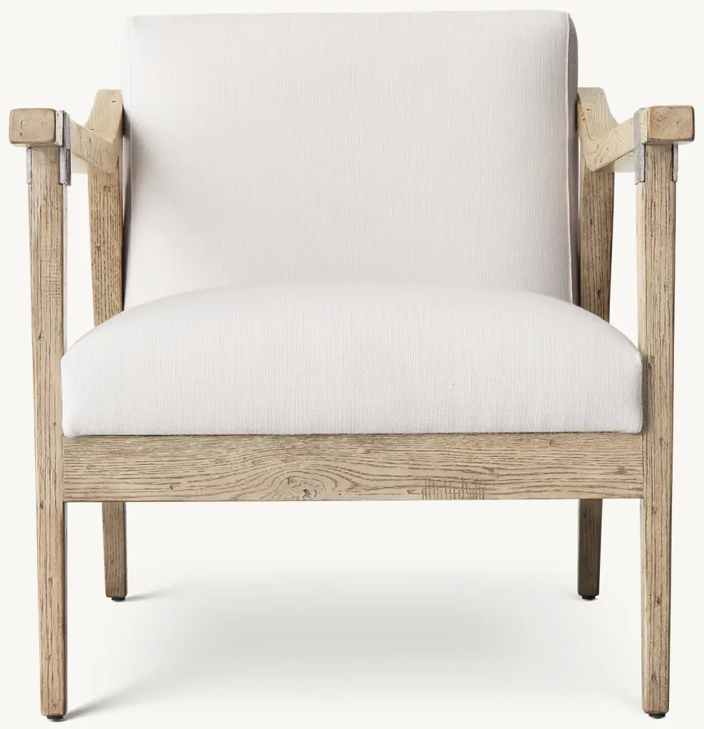 Our modernist Clift chair by the Van Thiels showcases the superior craftsmanship and elegant understatement that defined the midcentury American aesthetic. Beautifully crafted of solid oak, the angular arms and tapered legs are a study of finely tuned proportions, while hand-hammered metal accents lend artisanal detail. ALSO AVAILABLE IN LEATHER