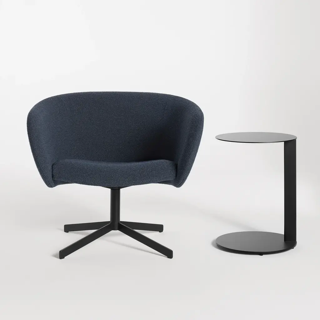 Gracefully curving contours and injection molded foam conspire to keep you comfortable. Generous seat maintains a dignified presence while providing ample space for you and your 2 o’clock snacks. Steel swivel base keeps you at ease in every direction. Great for busy-bodies and active areas.