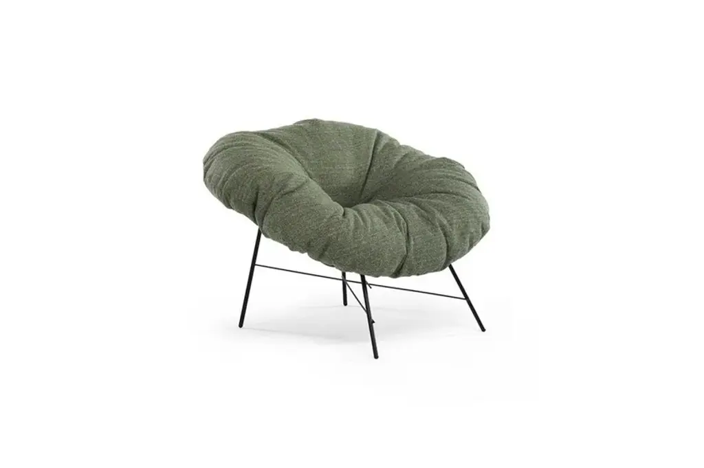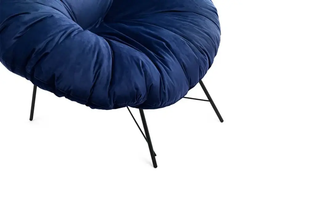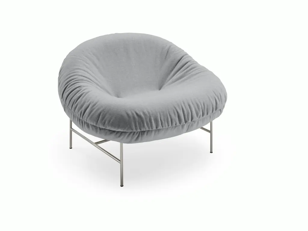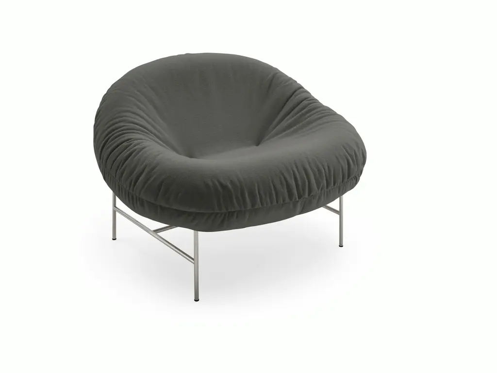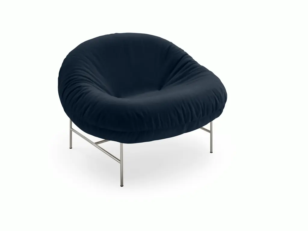 Closer is a small armchair with a matte black painted iron frame and a feather-filled cushion with a removable cover, fixed in the leather version. A slender yet extremely sturdy metal structure supports the large, enveloping cushion with its generous shape.