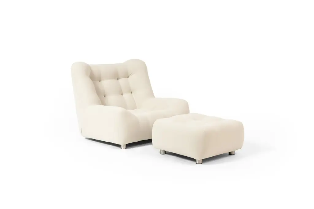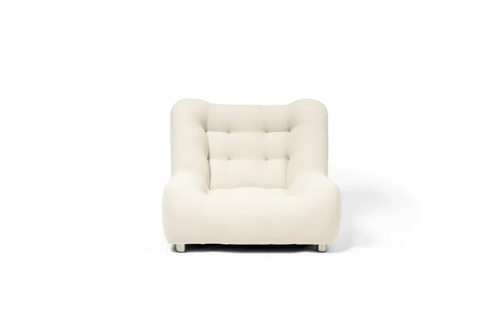 Cloud Armchair by RALPH MDimensions: W 108 x D 101 x H 87 cm. Materials: Fabric, Solid beech, Particle board panels, Stainless Steel.Details:Frame: Solid beech and particle board panels.Seat springing: Interlaced elastic webbing.Seat cushion: High resilience 35kg/m3 wrapped in 200g/m2 padding. High resilience 26kg/m3 wrapped in 200g/m2 padding.Back cushion: High resilience 26kg/m3 wrapped in 200g/m2 padding.Finish: Simple seams.Feet: Stainless steel.Ralph M:In its French workshop, Ralph M. creates and crafts personalisable top-quality sofas and armchairs. A bold challenge. And one achieved successfully for more than 30 years. The Ralph M. team fulfils the essential challenge of the Made in France label: guaranteed quality through the ability to combine the best materials with expertise and open-minded flexibility.For more than 30 years, Ralph M. has used its expertise and attention to detail in creating pieces that draw on the latest trends in furniture. But they also enjoy exercising their own bold originality. In fact, they like it so much that they always want to go further in asserting their unique aesthetic.The new RALPH M. range embodies their desire to take creative risks and enhance the standard pieces of the furniture repertoire by revisiting them.They believe that design is as valid an artistic expression as literature, painting and music. The RALPH M. brand makes everything possible. It is in many ways our laboratory in which luxury, comfort and good design come together to create timeless pieces with their own distinct identity.