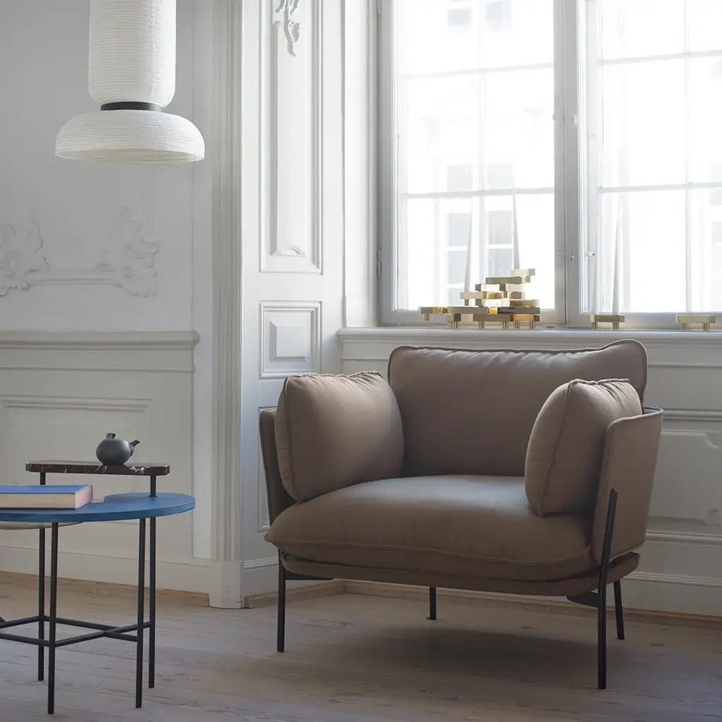 The Cloud Lounge Chair combines Scandinavian design with the emphasis on fabrics and comfort of the Italian tradition. This 1-seater chair is at once sturdy and soft. The back and armrest structure is made from plywood covered in foam and the base is made from solid wood and steel. The legs are made from steel coated in colors that match Cloud's fabrics.
