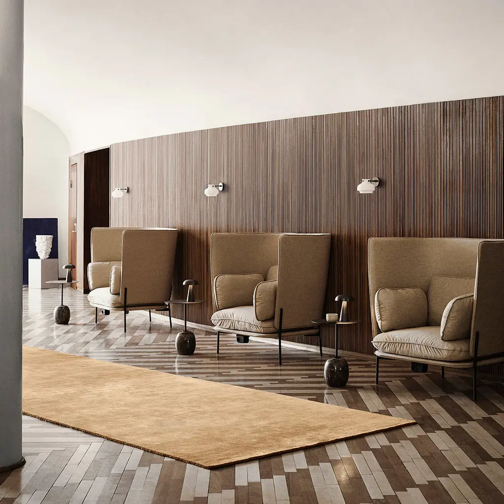 Designed to be spacious and expansive, Italian-born, Swedish-based designer Luca Nichetto wanted to minimize anything voluminous and accentuate the look and feel of lightness. Seen in this new version of Cloud Sofas with a high back. The secret to Cloud's truly hygge sensation involves feather and foam filled seat cushions resting on an upholstered solid wood base. Slim steel legs keep the base "afloat", with a special coating in black, chrome or bronzed. The cushions along the back are secured in place with a curved shell that extends quite high above your back, constructed from foam wrapped plywood covered in the same textile to match the cushions.