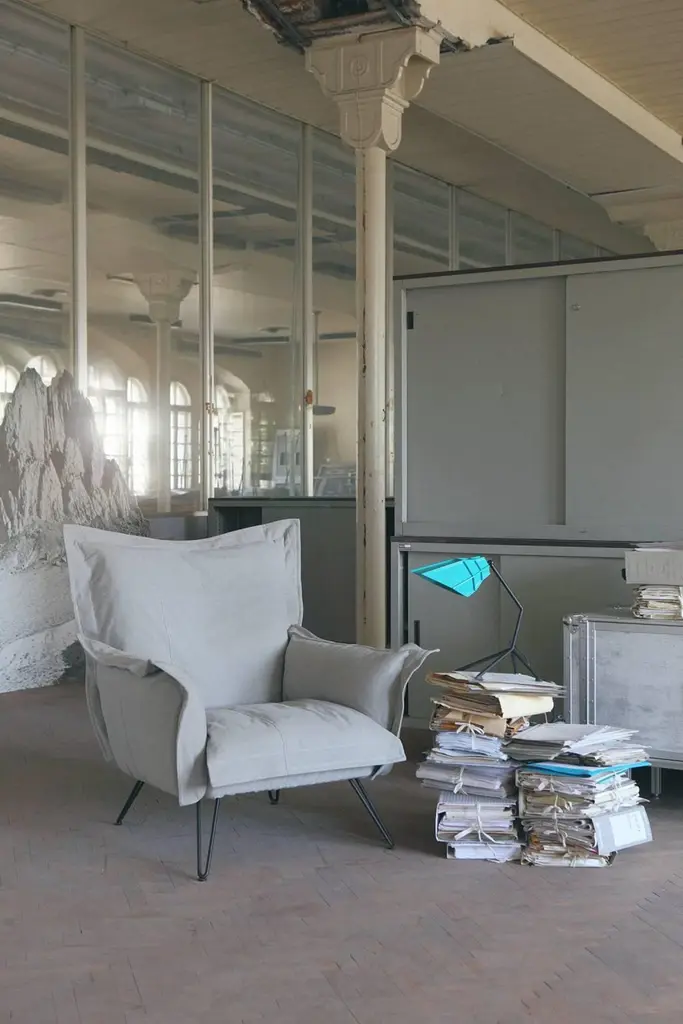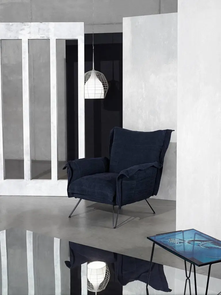 "Cloudscape" is an armchair, designed by Diesel Creative Team and manufactured by Moroso, featuring injected flame-retardant foam over internal steel frame, base in raw black varnished steel and cushions in polyester fiber or in goose down. Available with removable covers in fabric, leather or velvet. Recommended covers: cotton, linen, Plumcake, G-Print, leathers cat.T and cat.Z. Indoor use only.DIMENSIONS:D. 38.2", W. 37", H. 39", Seat H. 18.1"The large cushions of this soft armchair define its design and form a snugly comfortable seat.MOROSO, with DIESEL, has created a collection of products with a relaxed and comfortable mood, taking its inspiration from an informal lifestyle concept and targeting consumers who like simple shapes yet at the same time seek a “modern” style made up of high quality combined with a distinctive design of pure lines.“We worked with the Diesel creative team to develop an interesting and alternative collection idea which was to represent two different yet coexisting aspects of certain contemporary trends: one which is darker in tone, inspired by the underground world and with a more aggressive and enigmatic aesthetic, and the other lighter, inspired by nature and a visual radiance, with soft and welcoming shapes”, explained Patrizia Moroso who always follows all the phases of every design project personally.