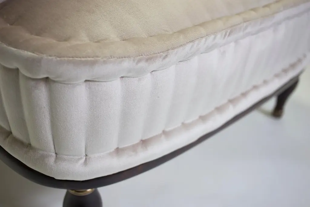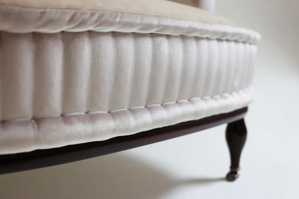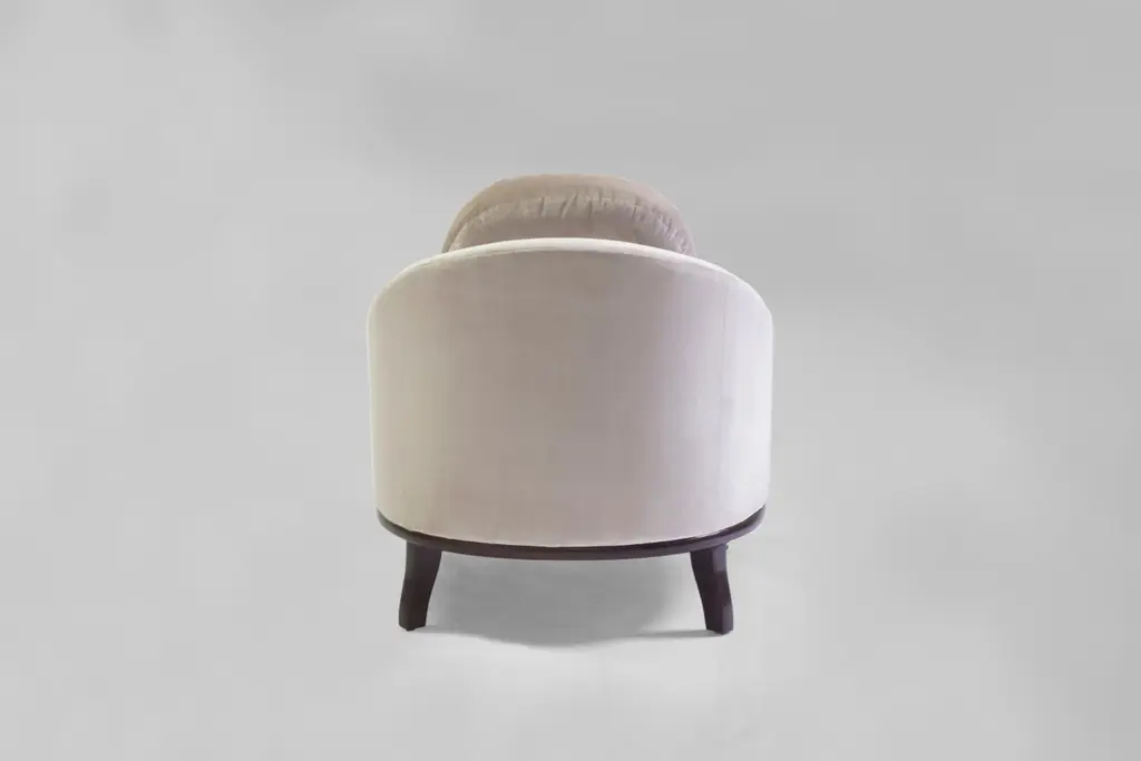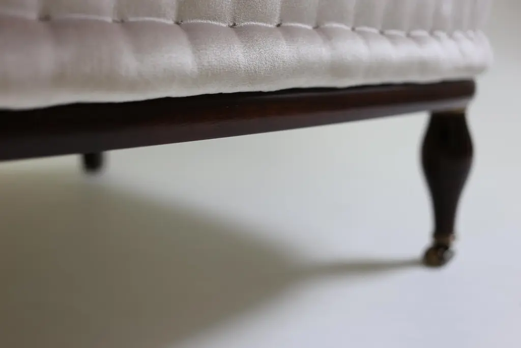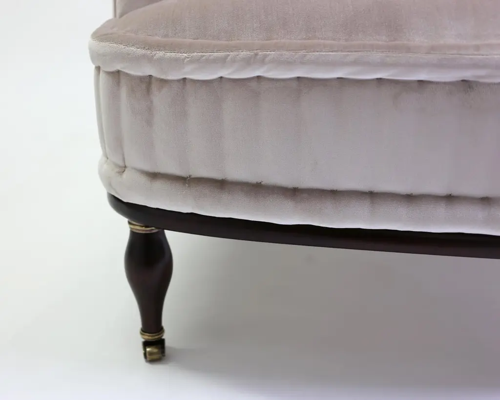 The Gladys club chair is a deco Classic beauty with loose back cushion made of feather and down and square back and arms with clean seams - it has a solid seat with hand-stitched rolled mattress edges as done in the old school upholstery technique - with wood frame and turned wood legs on brass casters.ITEM IS ONLY AVAILABLE MADE CUSTOM - CONTACT US FOR PRICING.PRICE IS SUBJECT TO INCREASE BASED ON WOOD, FINISH AND SIZE AS WELL AS COM/COL