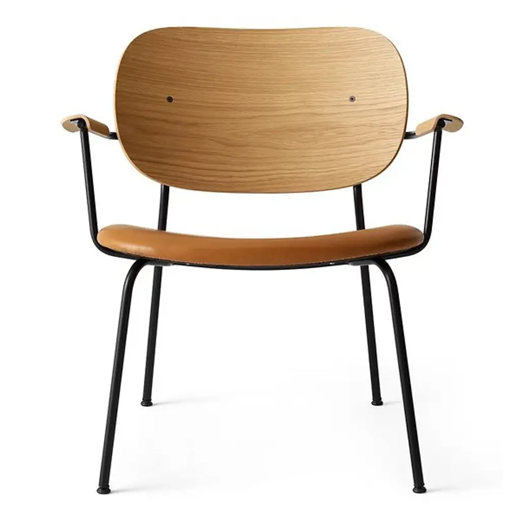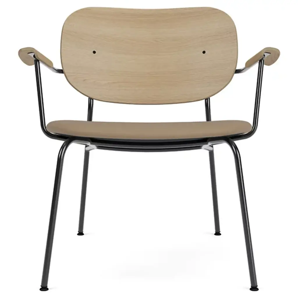 Relax back into the comfort of the Co Lounge Chair, Partially Upholstered from Audo Copenhagen, formerly known as Menu, a stylish minimalist fixture that places a human-centric ethos at the center of its minimalist design, combining contemporary and Scandinavian styles. Designed by Norm Architects, its powder-coated-steel tubular frame holds up a cushioned seat, low-profile armrests, and a curved plywood back. This lounge chair is a quietly brilliant piece that brightens up boardroom, kitchen, or lobby alike. This responsibly sourced chair features oak veneer and a comfy foam filler.