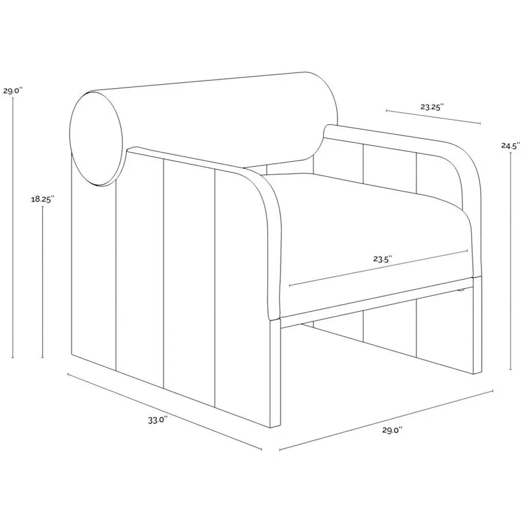 The Coburn Lounge Chair is a fresh take on contemporary comfort. A bolster back and deep seat upholstered in our soft eclipse white fabric make this piece an inviting addition to any space. Matching fabric trim on the rounded arms adds extra charm to the overall look. Completed with a rustic oak wood veneer legs carefully selected for its distinctive wood graining. As wood is an organic, porous material, these pieces will contain natural variation of texture and may also exhibit fine indentations and cracks. Wood pieces will also display a disparity of colour and grain, and visible knots and burls that add to the character of each piece.