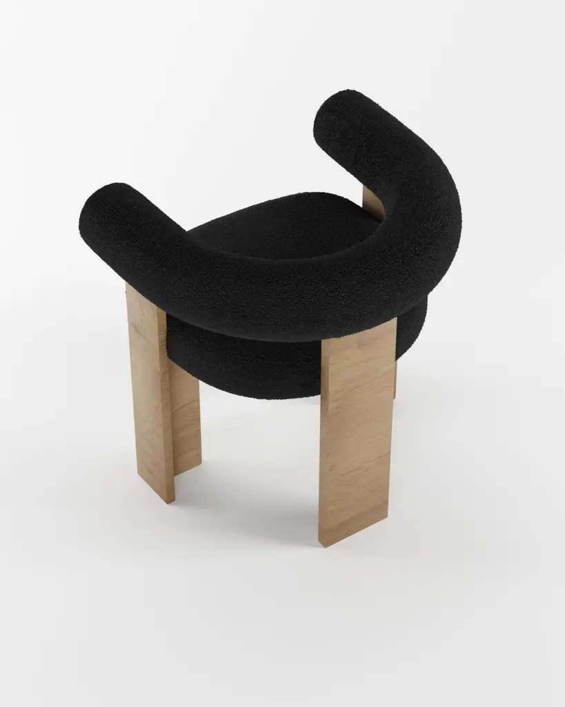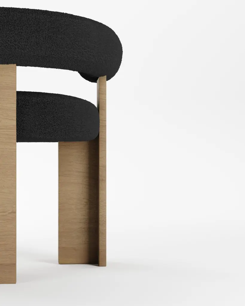 W 70 cm 27,5”D 61 cm 24”H 90 cm 35,4”SH 72 cm 28,3”orH 100 cm 39,3”SH 82 cm 32,2”A chair that mixes both modern and classical design approaches.Designed to hug the body, durable and solid chair features a body structure produced in solid wood.In Solid oak wood structure and upholstered in Boucle fabric.This piece can be customized to everyones taste.Made in Portugal, by CollectorAbout CollectorThe Collector brand was born and Portugal and aims to be part of daily life by fusing furniture to home routines and lifestyles. The company designs its pieces with the intention to embrace diverse styles and to blend in inside any contemporary setting.A wide range of product typologies are designed to work in diverse layers of importance. The result is a clean-lined furnishing collection that can easily be customised to work specifically and according to each unique need, reflecting traditional methods of furniture manufacturing with accurate industrial production methods. Collector strives to achieve the best quality possible by selecting the best materials and by the constant development of production processes and manufacturing partnerships.