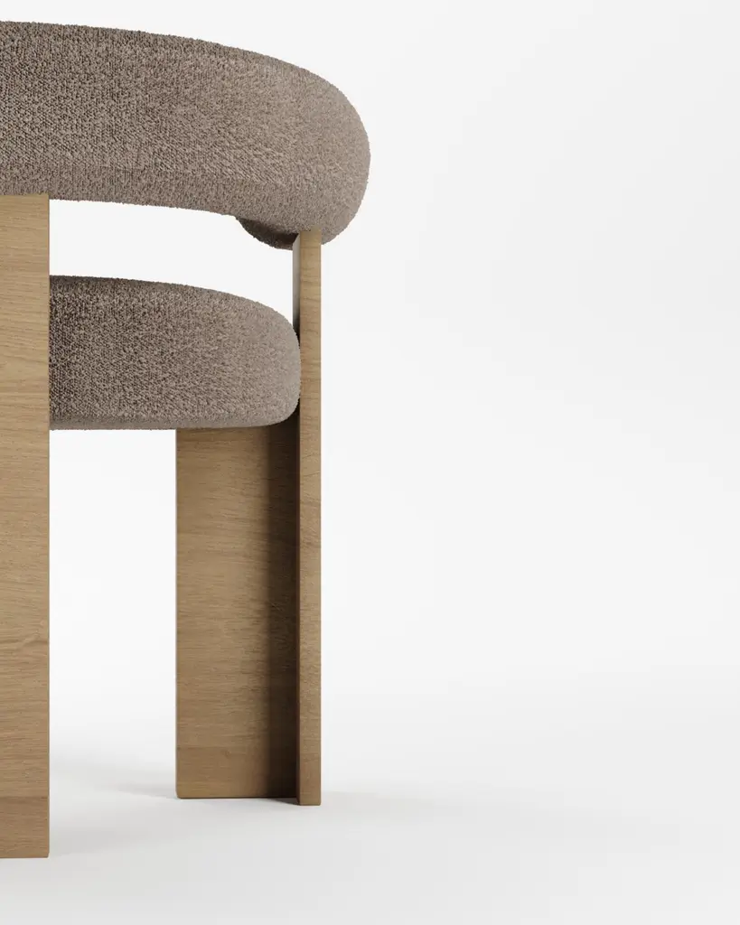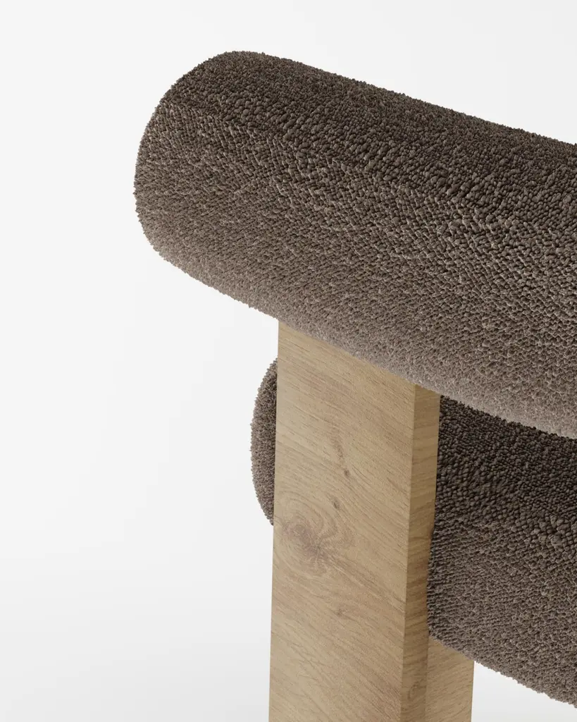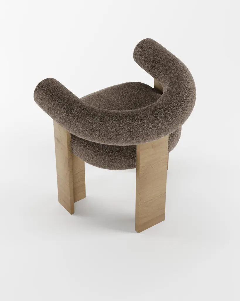 W 70 cm 27,5”D 61 cm 24”H 90 cm 35,4”SH 72 cm 28,3”orH 100 cm 39,3”SH 82 cm 32,2”A chair that mixes both modern and classical design approaches.Designed to hug the body, durable and solid chair features a body structure produced in solid wood.In Solid oak wood structure and upholstered in Boucle fabric.This piece can be customized to everyones taste.Made in Portugal, by CollectorAbout CollectorThe Collector brand was born and Portugal and aims to be part of daily life by fusing furniture to home routines and lifestyles. The company designs its pieces with the intention to embrace diverse styles and to blend in inside any contemporary setting.A wide range of product typologies are designed to work in diverse layers of importance. The result is a clean-lined furnishing collection that can easily be customised to work specifically and according to each unique need, reflecting traditional methods of furniture manufacturing with accurate industrial production methods. Collector strives to achieve the best quality possible by selecting the best materials and by the constant development of production processes and manufacturing partnerships.