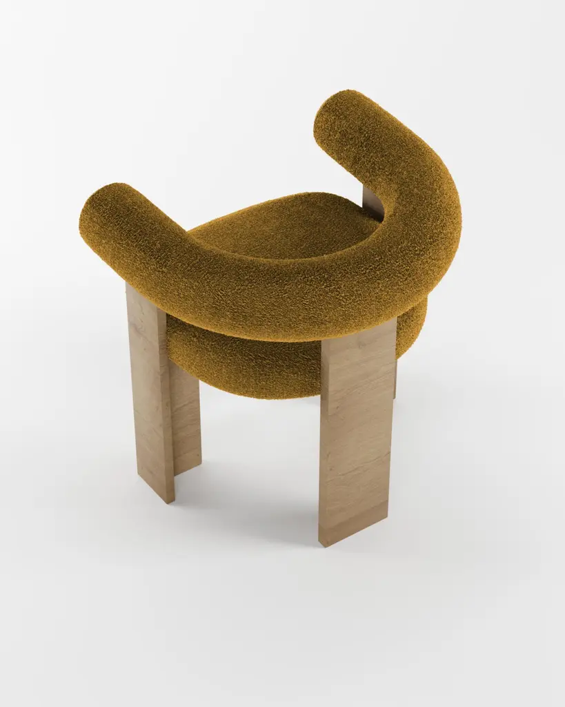 W 70 cm 27,5”D 61 cm 24”H 90 cm 35,4”SH 72 cm 28,3”orH 100 cm 39,3”SH 82 cm 32,2”A chair that mixes both modern and classical design approaches.Designed to hug the body, durable and solid chair features a body structure produced in solid wood.In Solid oak wood structure and upholstered in bouclé fabric.This piece can be customized to everyone’s taste.Made in Portugal, by Collector.About Collector:The Collector brand was born and Portugal and aims to be part of daily life by fusing furniture to home routines and lifestyles. The company designs its pieces with the intention to embrace diverse styles and to blend in inside any contemporary setting.A wide range of product typologies are designed to work in diverse layers of importance. The result is a clean-lined furnishing collection that can easily be customised to work specifically and according to each unique need, reflecting traditional methods of furniture manufacturing with accurate Industrial Production methods. Collector strives to achieve the best quality possible by selecting the best materials and by the constant development of production processes and manufacturing partnerships..
