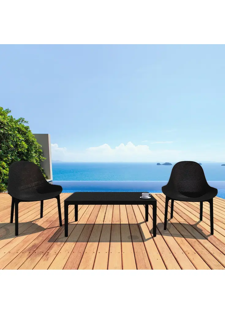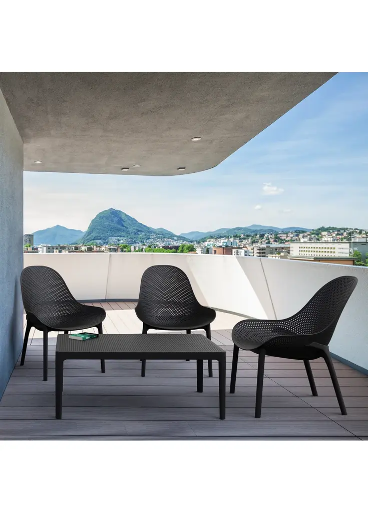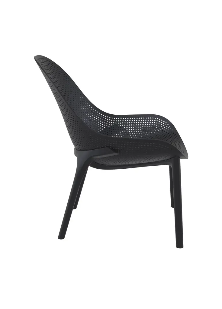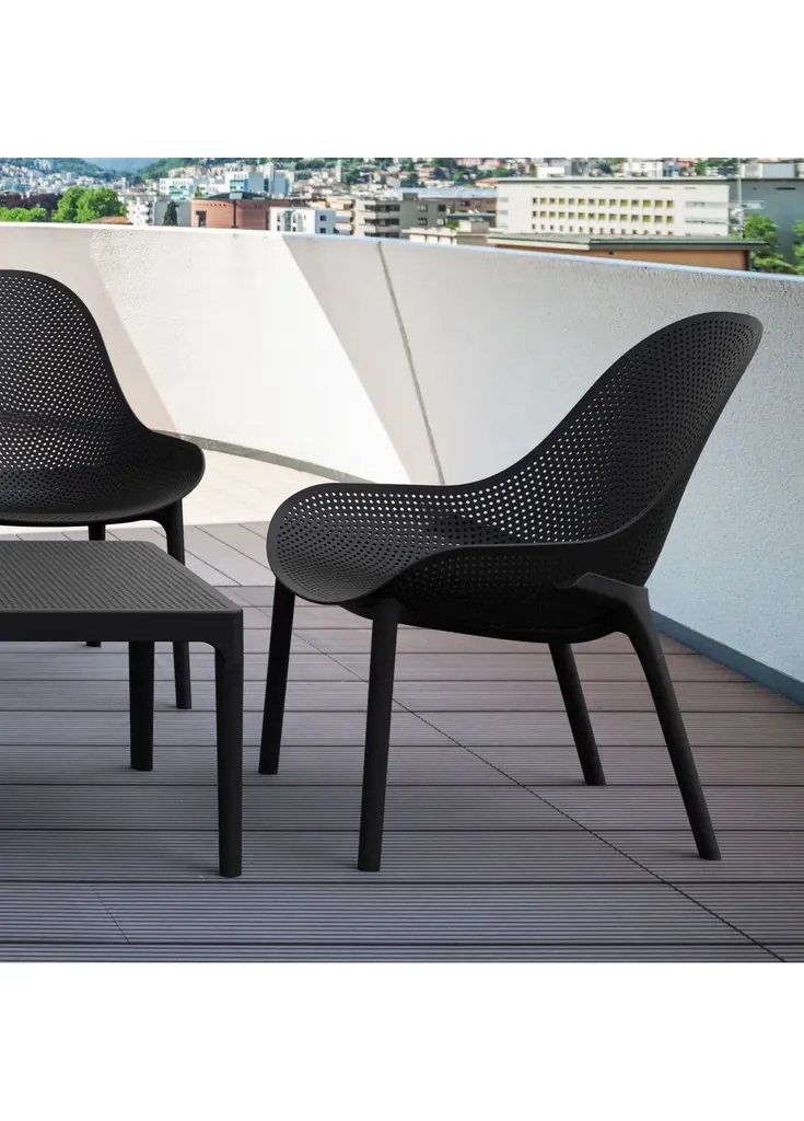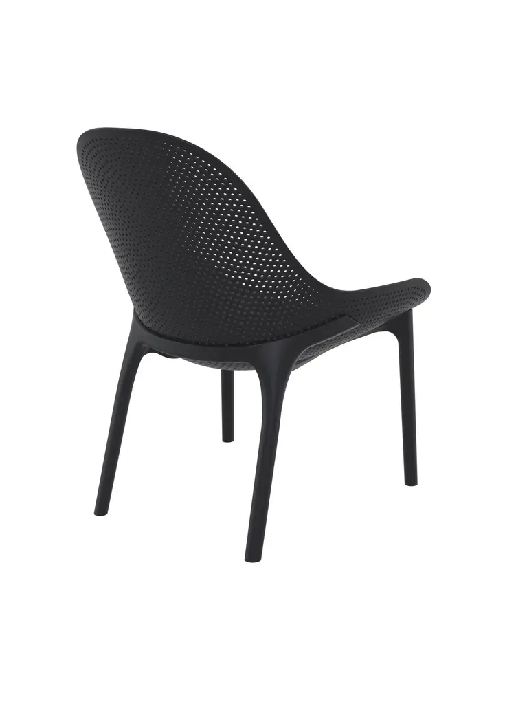 Sky lounge chair. Contemporary design. Made from commercial grade resin with gas injection molded legs. Extremely durable for outdoor temperatures. Easy cleaning. Perfect for heavy use indoor outdoor areas.