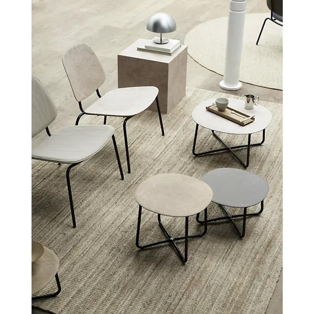 The Compound Lounge Chair from Mater is a sustainable piece designed by OEO Studio. It combines rustic modern aesthetics with eco-conscious materials. Crafted with a commitment to sustainability, your lounge chair is constructed using coffee shell waste sourced from BKI’s coffee roasting process or wood waste mixed with post-consumer e-waste. This innovative approach to material sourcing results in a distinctive variation in appearance. Your lounge chair features a frame made from 20% recycled steel.