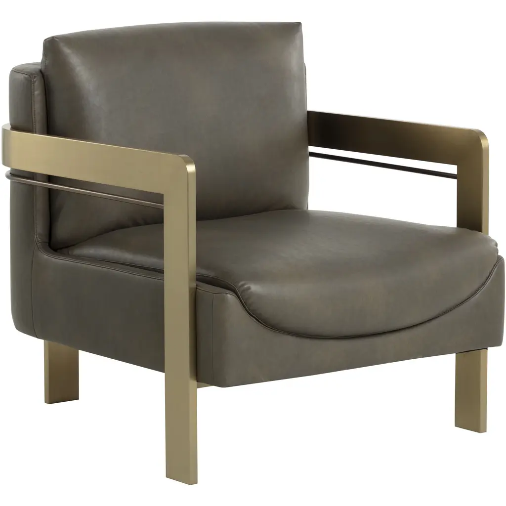 How do you choose the right accent chair for yourspace? We suggest skipping the rest and head straight for this modern classic. Muchlike suede, the Connor occasional chair is strapped in soft, high-qualitytop-grain leather, perfect for leisurely lounging. It also has a distinctively sturdy leather sling that’s reclined for all sorts of relaxation. A little sculptural with a luxe dash, this chair’s sleek and robust iron frame adds an industrial edge to the smooth brown leather.