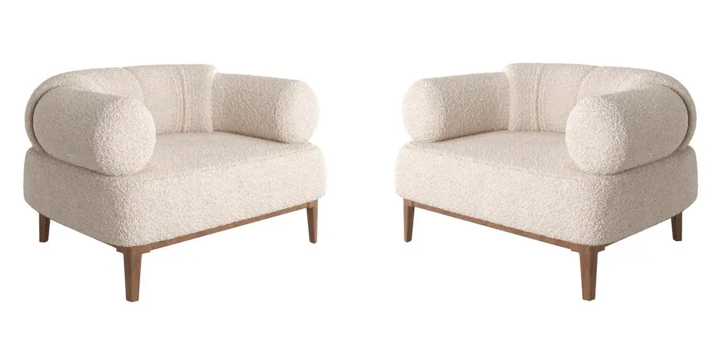 Contemporary Armchair Upholstered In Bouclé Fabric, Set Of 2.