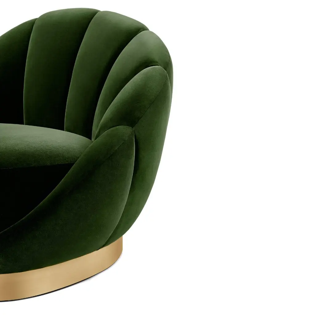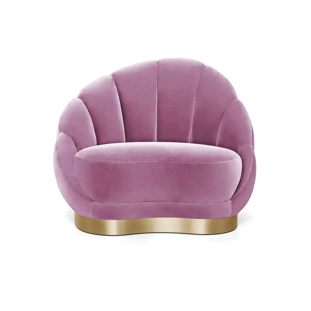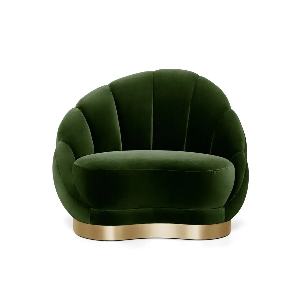 The lounge chair projects pure haute couture, with its sensuous feminine outline and voluptuous shape. Each exquisite curve features detailed seaming through the front to back, enveloped by a sinuous footer, creating the pièce de résistance for any interior.Upholstery: Velvet Footer: Brushed brassHandmade in Europe.We will be glad to check with the factory’s technical team if sizes, finishes, and colors can be customized.We do our best to expedite production and to ship and deliver product within the listed lead time, however current lead times might be longer due to global shipping backlog and delays. These delays are out of our control and cannot be a reason to cancel an order.Our pricing includes all costs for international shipping to the U.S., as well as duties and customs clearance fees. Please be aware that local delivery within the U.S. is not included. We offer white glove, front door, and warehouse delivery options. For shipments outside the U.S., kindly reach out to us for a detailed quote.