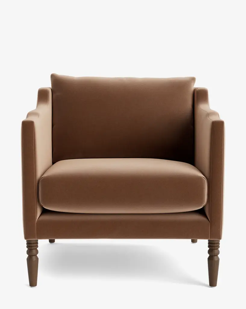 Crafted for both luxury and durability, this accent chair features a medium seat feel with premium feather-down wrapped high-density triple-layer foam. Its removable and reversible back and arm cushions offer easy upkeep, complemented by an attached seat cushion for added comfort. Upholstered in soft velvet, this chair brings a touch of elegance to any space. Solid rubberwood legs and a base with a natural finish enhance its unique texture and sturdy construction. 36"