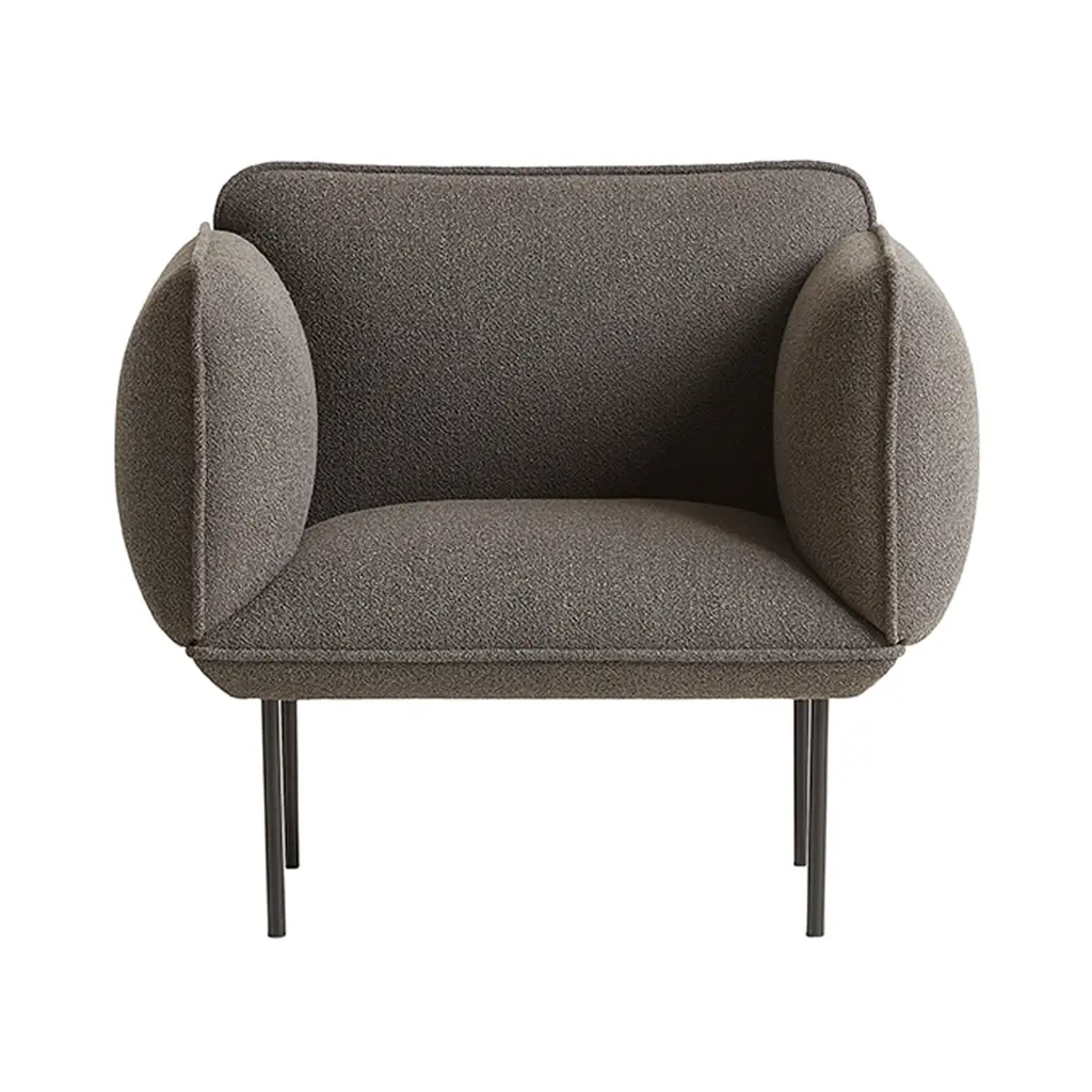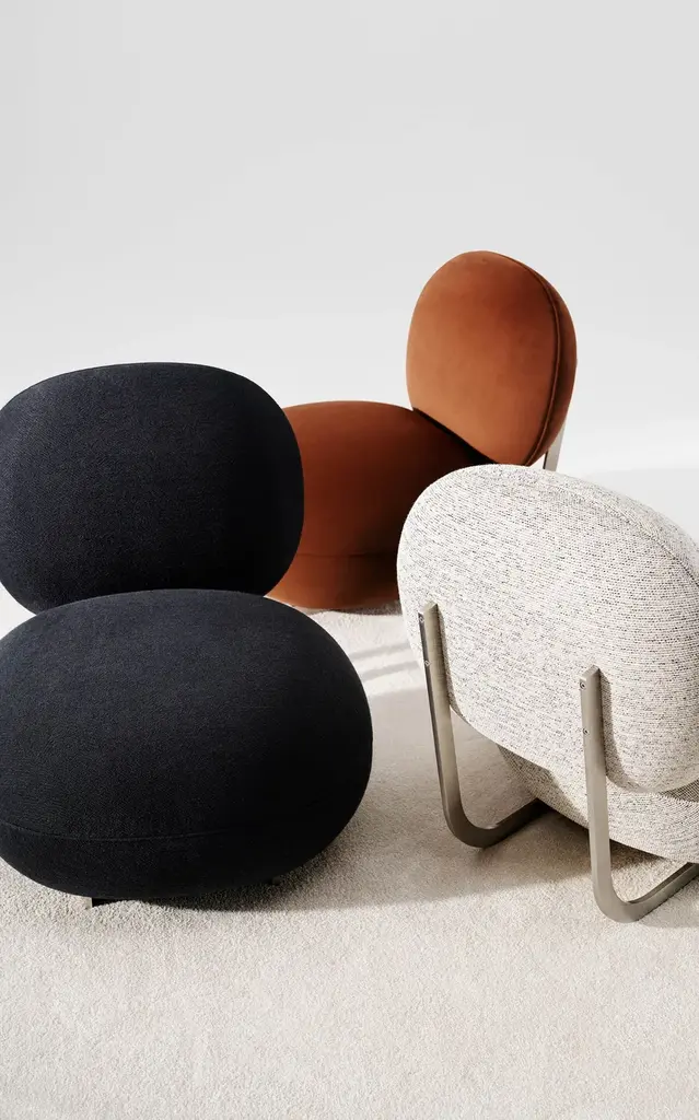 COOPER is a fabric lobby chair. The Cooper armchair is a bridge between past and present, with rounded shapes and clean lines inspired by old classic cars. Consisting of a curved frame and a rounded seat and back, it combines two simple shapes in a refined yet bold way. It integrates elements from the 1970s and 1980s, creating a quiet familiarity. The frame, available in stainless steel or FSC-certified solid oak, represents both the contemporary side and the heritage of NORR11. Its expression can vary with different combinations of structure and upholstery, offering endless creative possibilities. Every detail is intentional, making the chair both familiar and unique, embodying the design philosophy of NORR11.