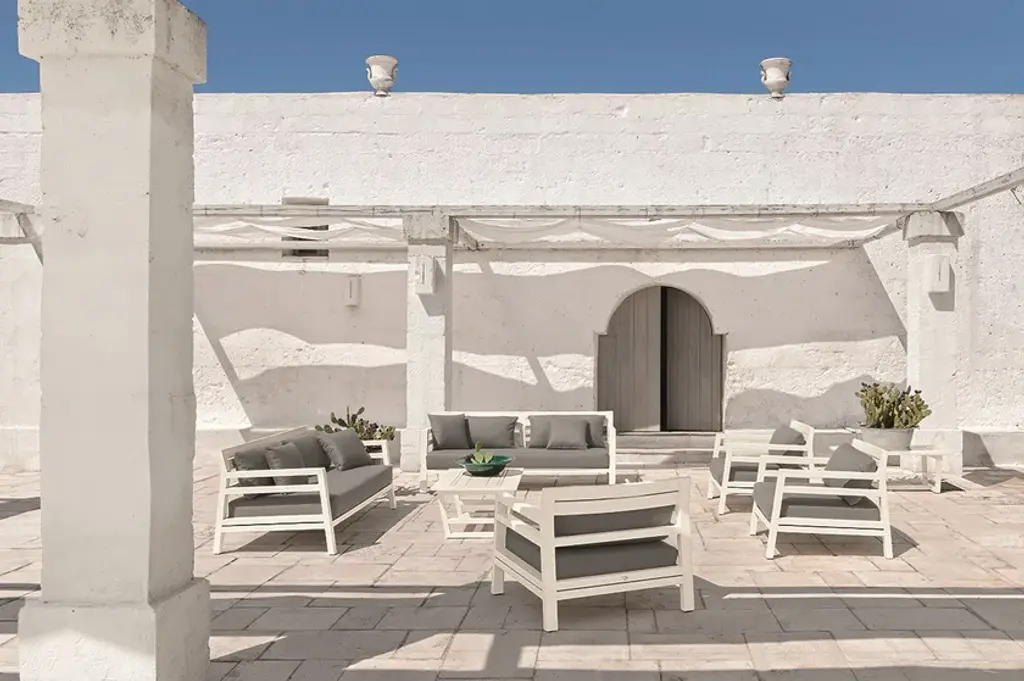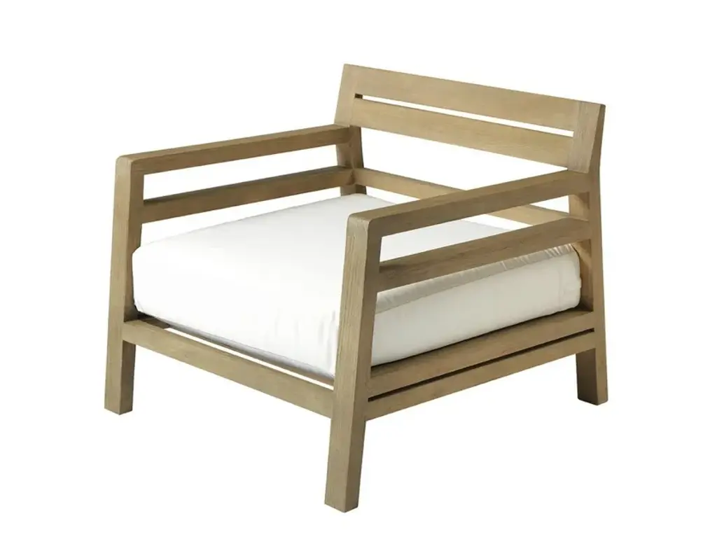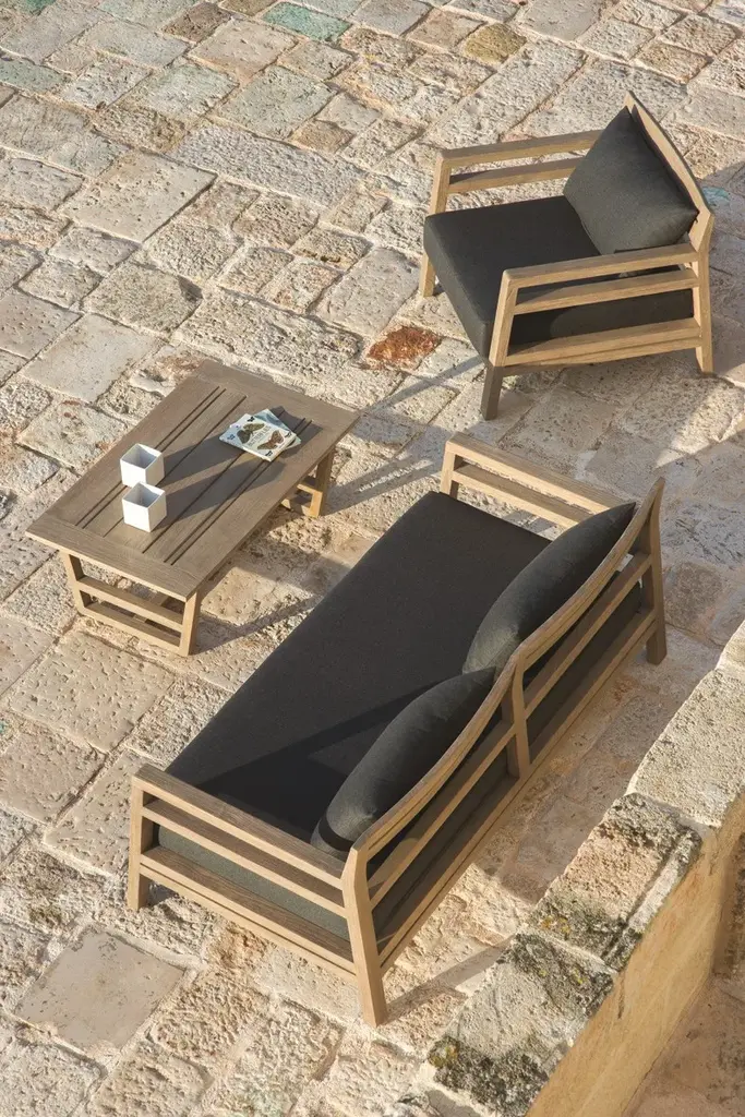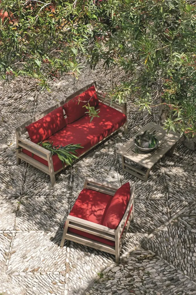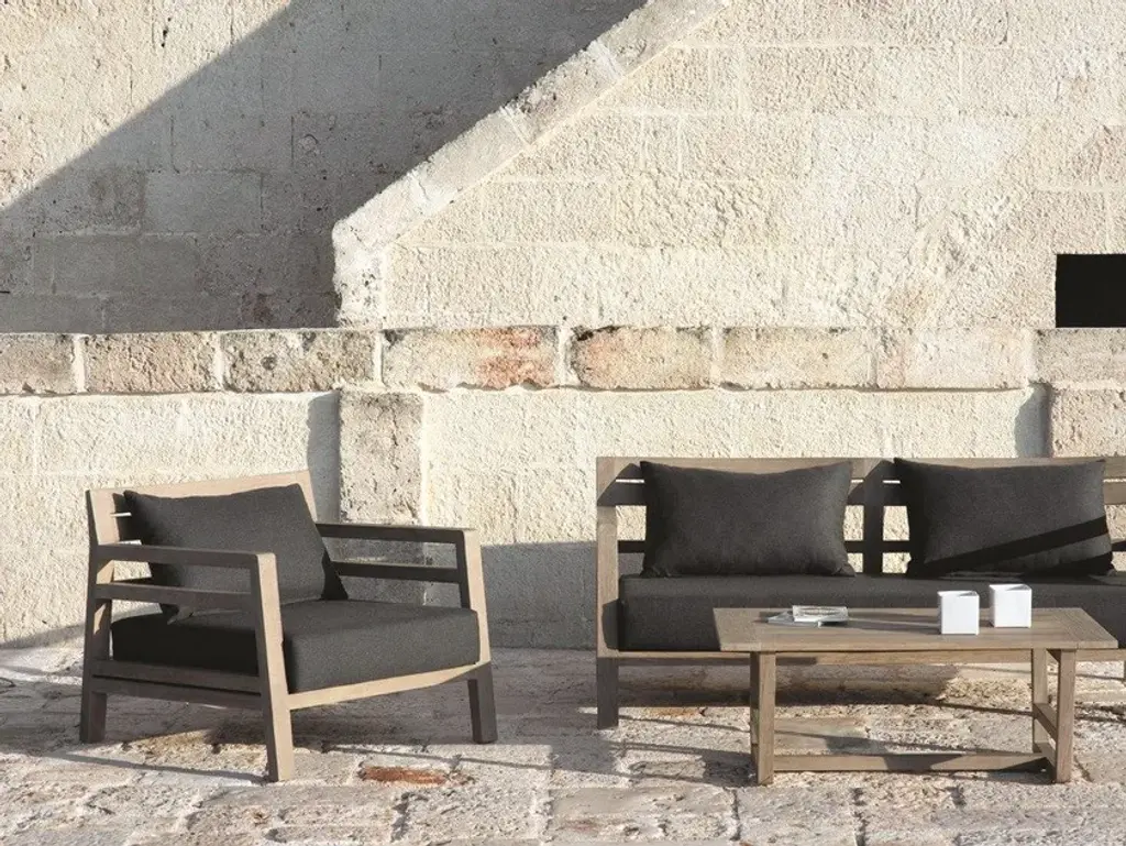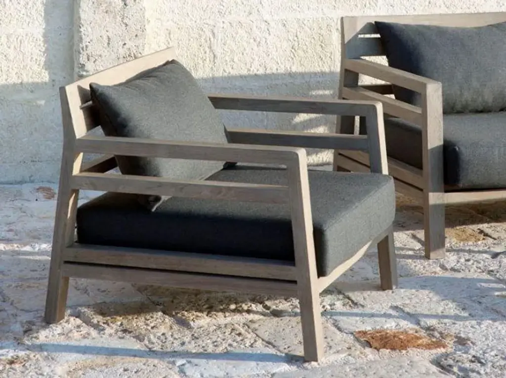 COSTES garden armchair in natural or pickled teak or in painted mahogany.Costes explores the multiple expressive possibilities of wood: from varnished mahogany to teak, available in natural or pickled finish with its fascinating “worn” look. A wide choice of elements, always with harmonious and essential lines: from sofas to tables, to the chairs and the sun lounger.