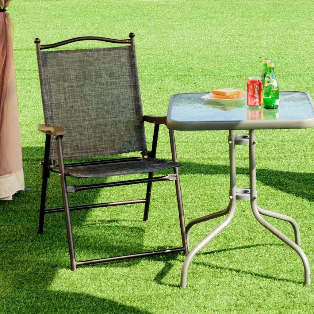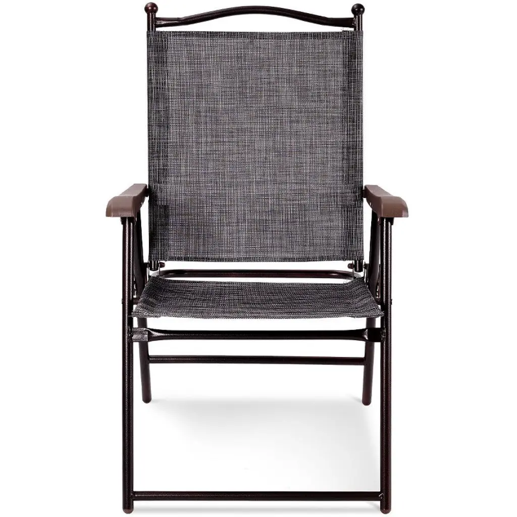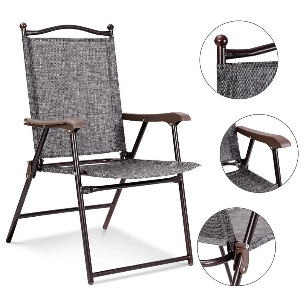 Costway Set Of 2 Patio Folding Sling Back Chairs Camping Deck Garden Beach Gray