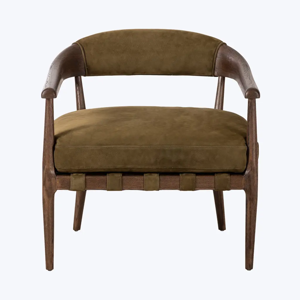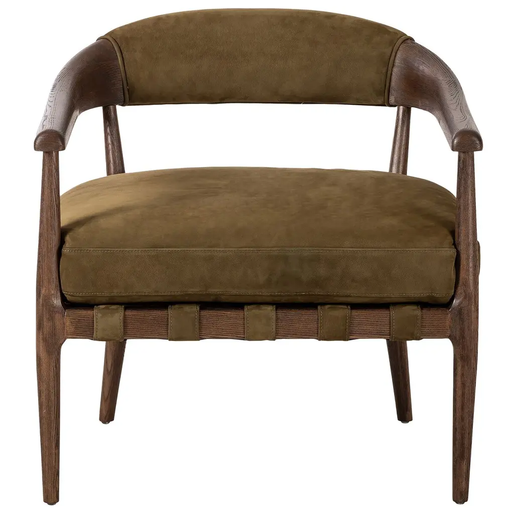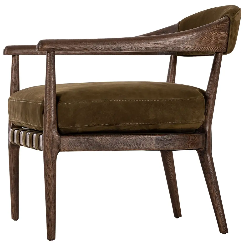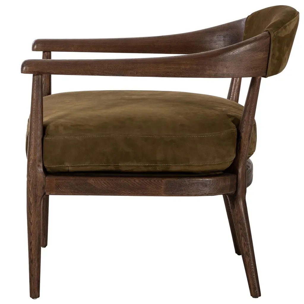 Cottswald Accent Chair, Moss Nubuck Leather/brown Ash