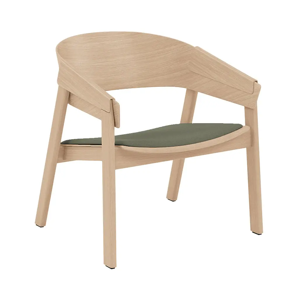Within the legacy of Scandinavian style, designer Thomas Bentzen turns a new page with the innovative use of wood layering in his upholstered lounge chair. Featuring a capacious padded seat sheathed in textiles from Kvadrat or Refine leather, Cover still takes up comparatively little space in a room. Thomas creates a striking profile with the expressively curved shell, wooden armrests and slightly dipped seat, with the wood folded over the chair's legs and backrest. The chair frame is crafted in solid beechwood, with the backrest either in natural oak or in ash for the colored version.