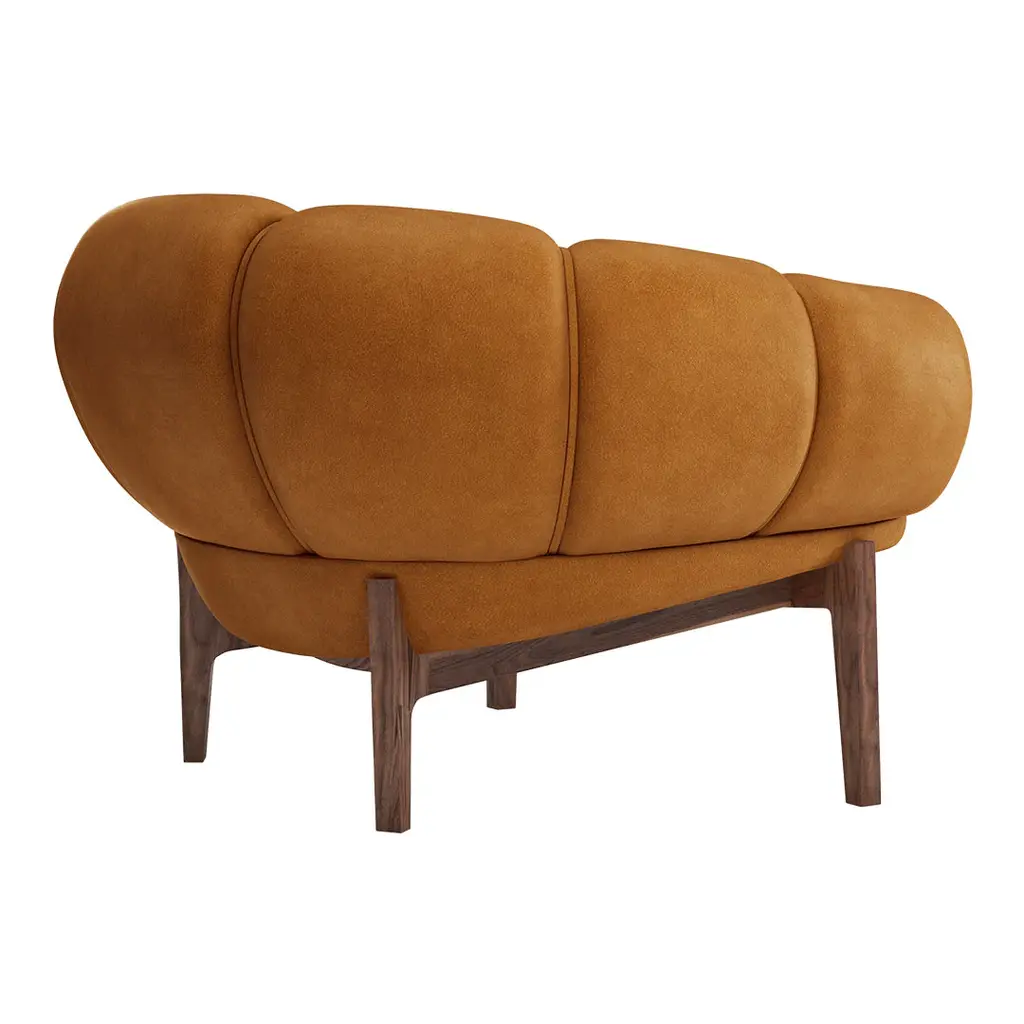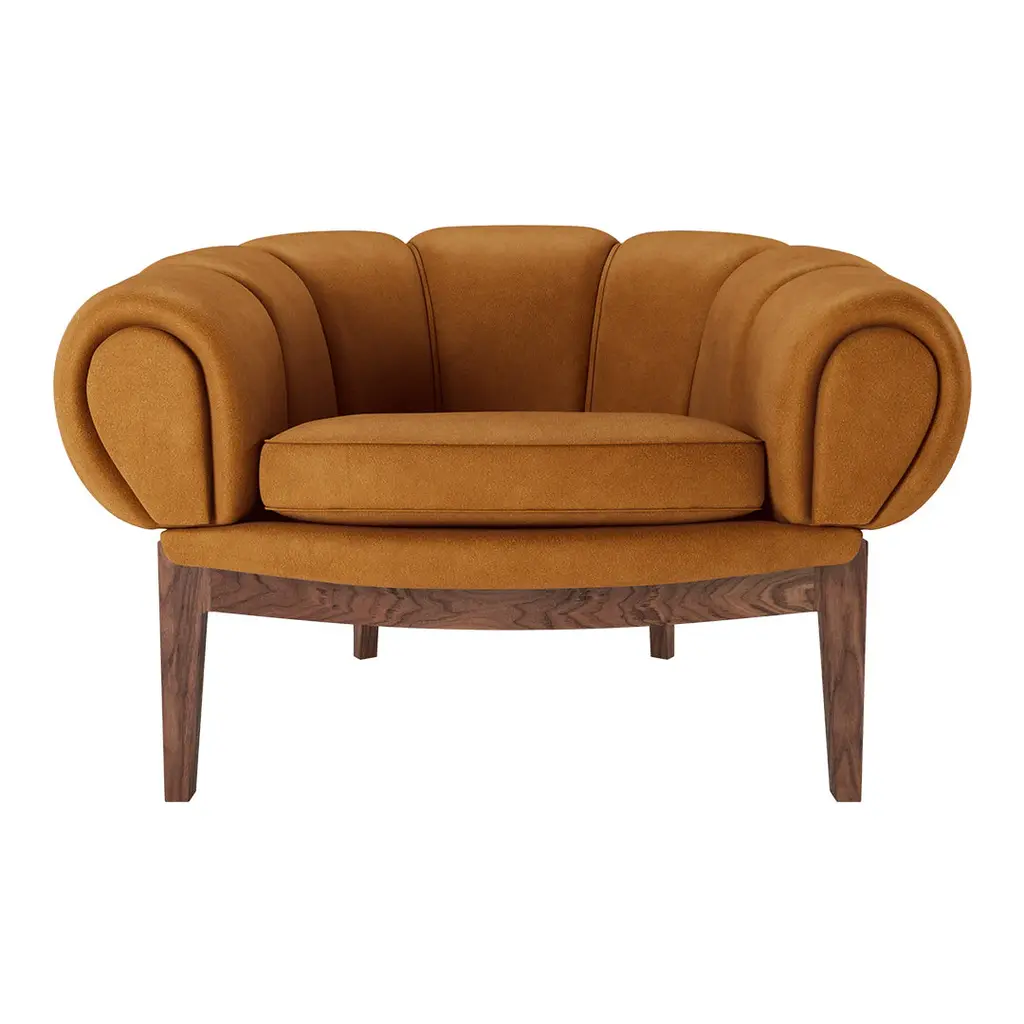 The Croissant Sofa and Lounge Chair represent an elegant and playful take on the traditional typology of the Chesterfield sofa and club chair. Wikkelso believed that a chair was not just for sitting upright, but that it should be comfortable no matter the angle at which you sit – or even lie down. He redefined these classic pieces for a more relaxed audience emerging in the optimism of the 1960s. The characteristic ‘croissant†form – named for its playful reference to the iconic French breakfast pastry – makes a confident statement with a sense of humor in any interior space and works well as a standalone focal piece or in combination with other bold selections.