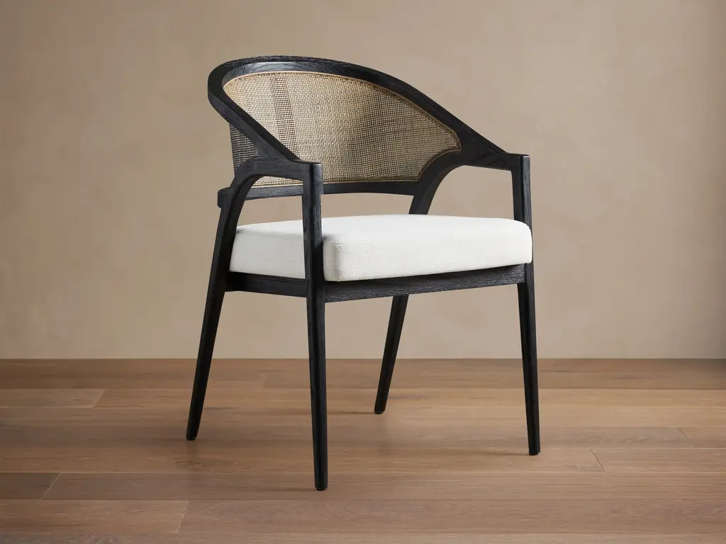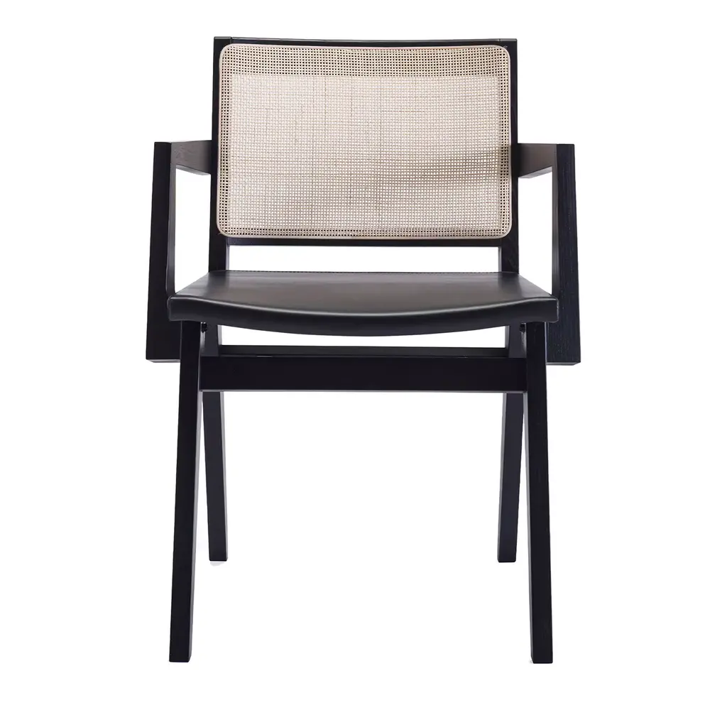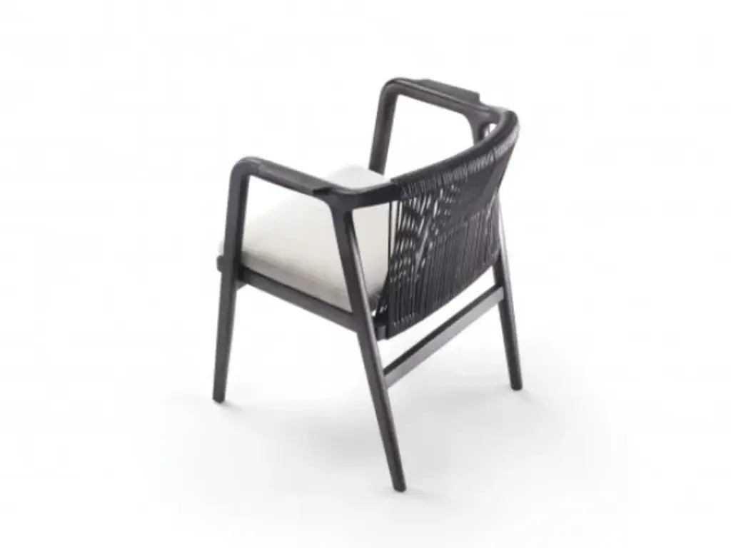 With its graceful, restrained proportions, the Crono small armchair reflects the lines of its namesake armchair. The solid wood structure – in Canaletto walnut or ash, stained in various shades – displays the kind of workmanship that clearly expresses the company’s flair for embracing the heritage of Italian cabinetmaking tradition as its own. As unique as it is sophisticated, the seat back is entirely hand-woven in a design made from cowhide cord; the seat is padded with polyurethane foam covered with a laminated fabric, and the upholstery – in fabric or leather – is removable.TECHNICAL SPECIFICATIONSFrame in solid wood canaletto walnut, canaletto walnut extra, canaletto walnut stained coffee or in ashwood natural, stained teak, stained ebony, stained wenge, stained cherry, stained walnut, stained coffee stained brown. Woven hide leather cord: black, tobacco, natural, dark brown, grey, olive and russian red. Metal frame coated with epoxy powder Seat in wood and metal with foam polyurethane padding covered with protective fabric lining Backrest cushion down-filled Upholstery removable fabric or leather coversMATERIALS Frame: wood finishes Upholstery: cashmere - cotton - leather - nabuk - linen - mixed composition - velvet