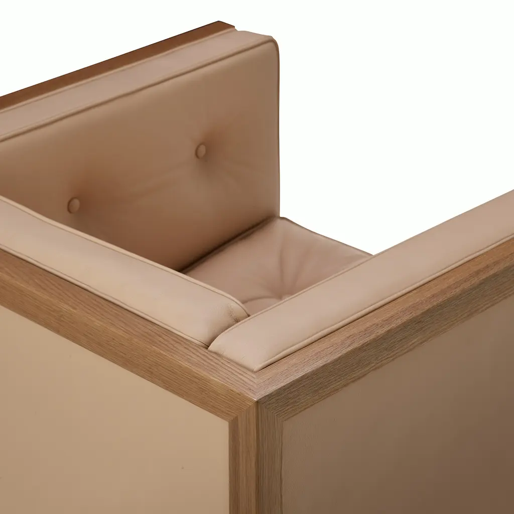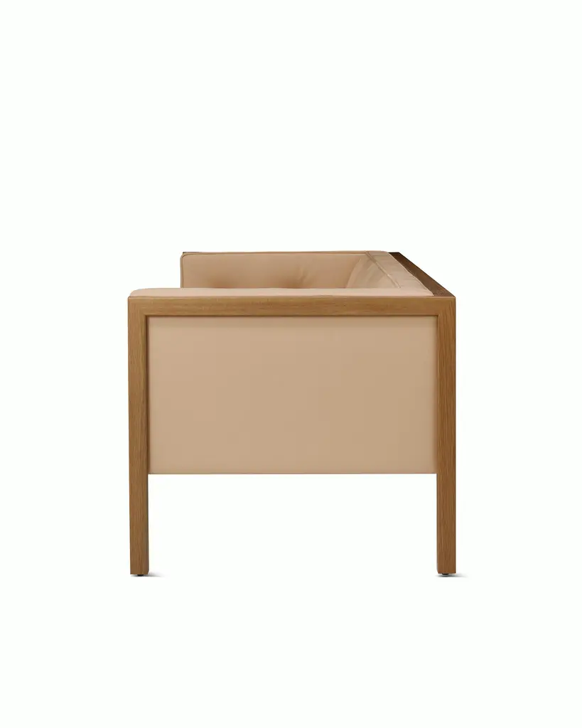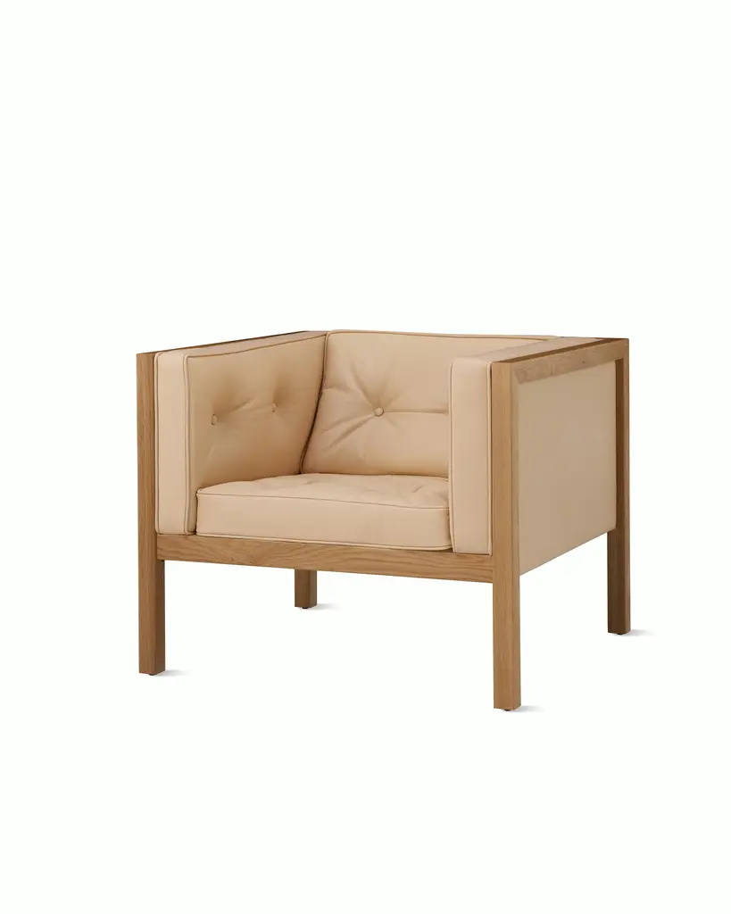 Relaunched from the Herman Miller archives, George Nelson’s Cube Group (1968) is a classic midcentury collection that’s just as relevant today. A mix of hard and soft, Cube’s solid wood frame is paired with an inviting tufted seat neatly finished with piping for a tailored look.