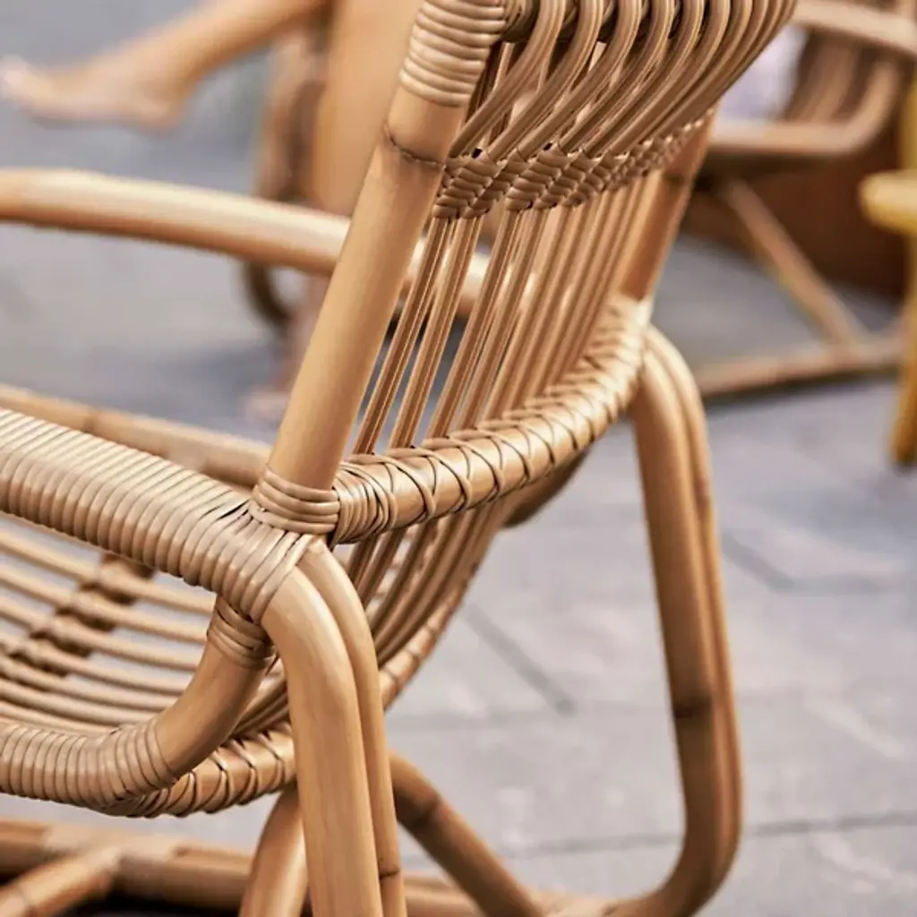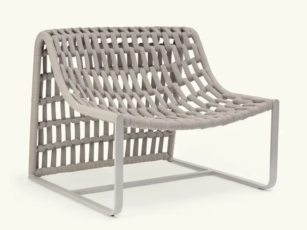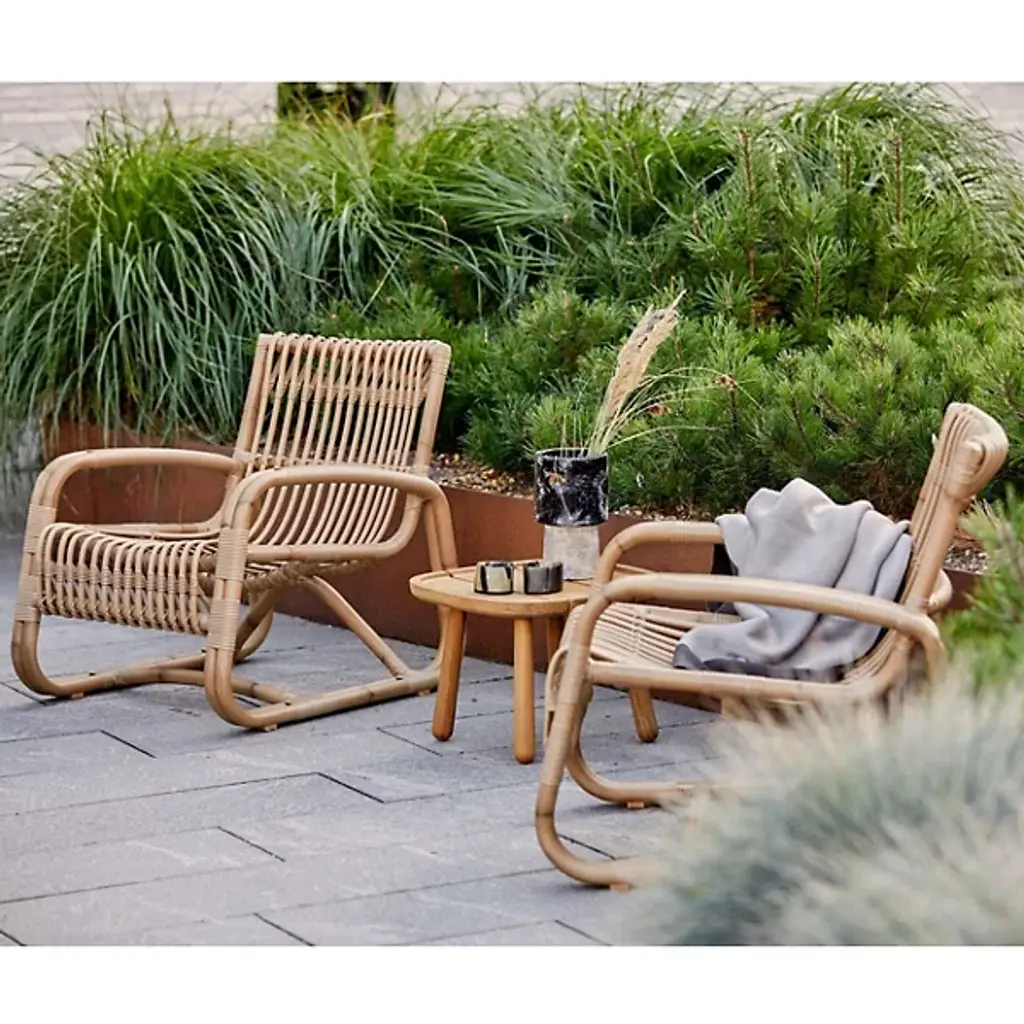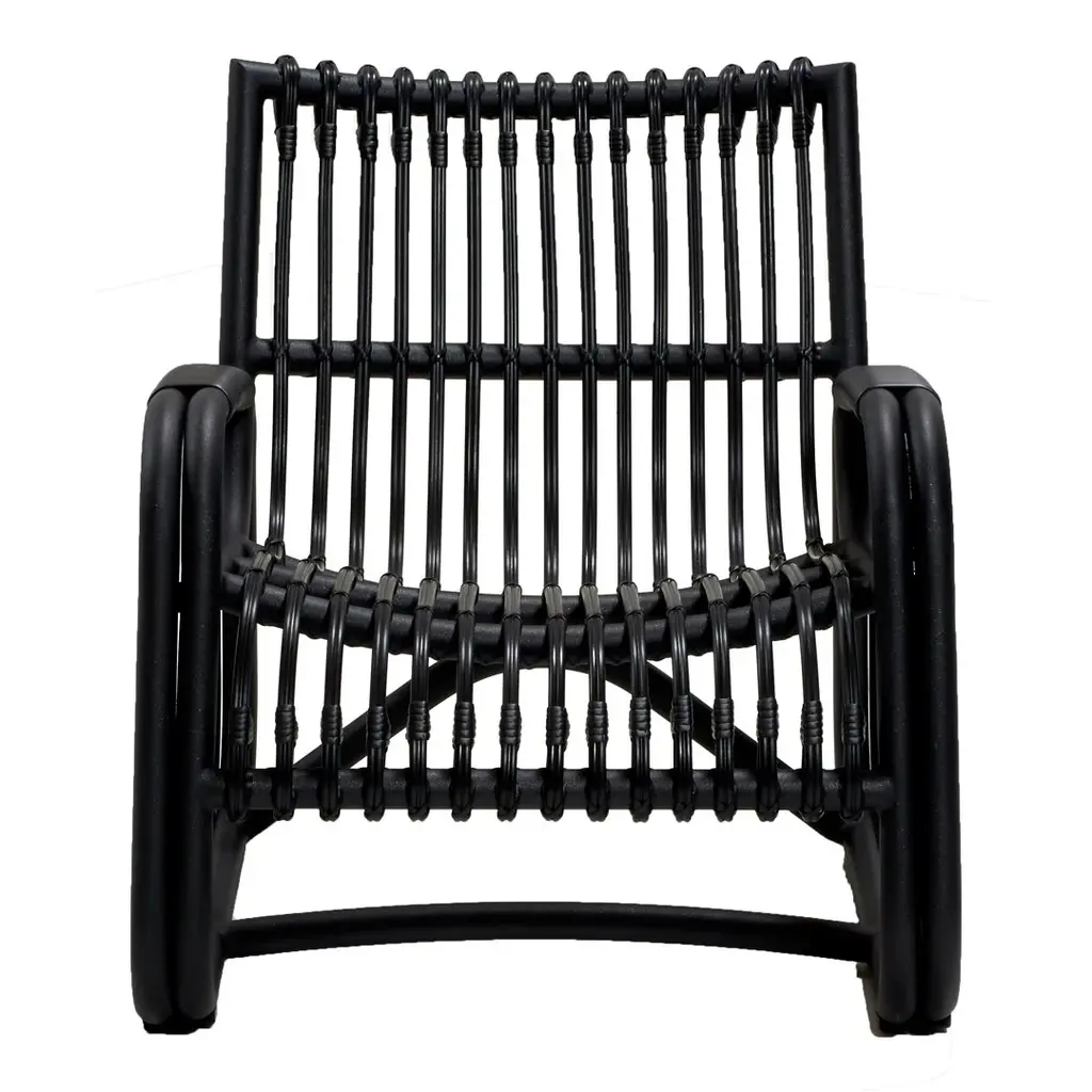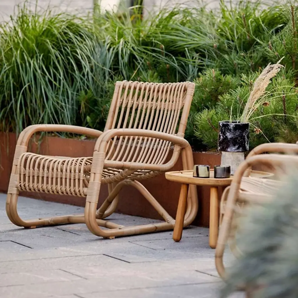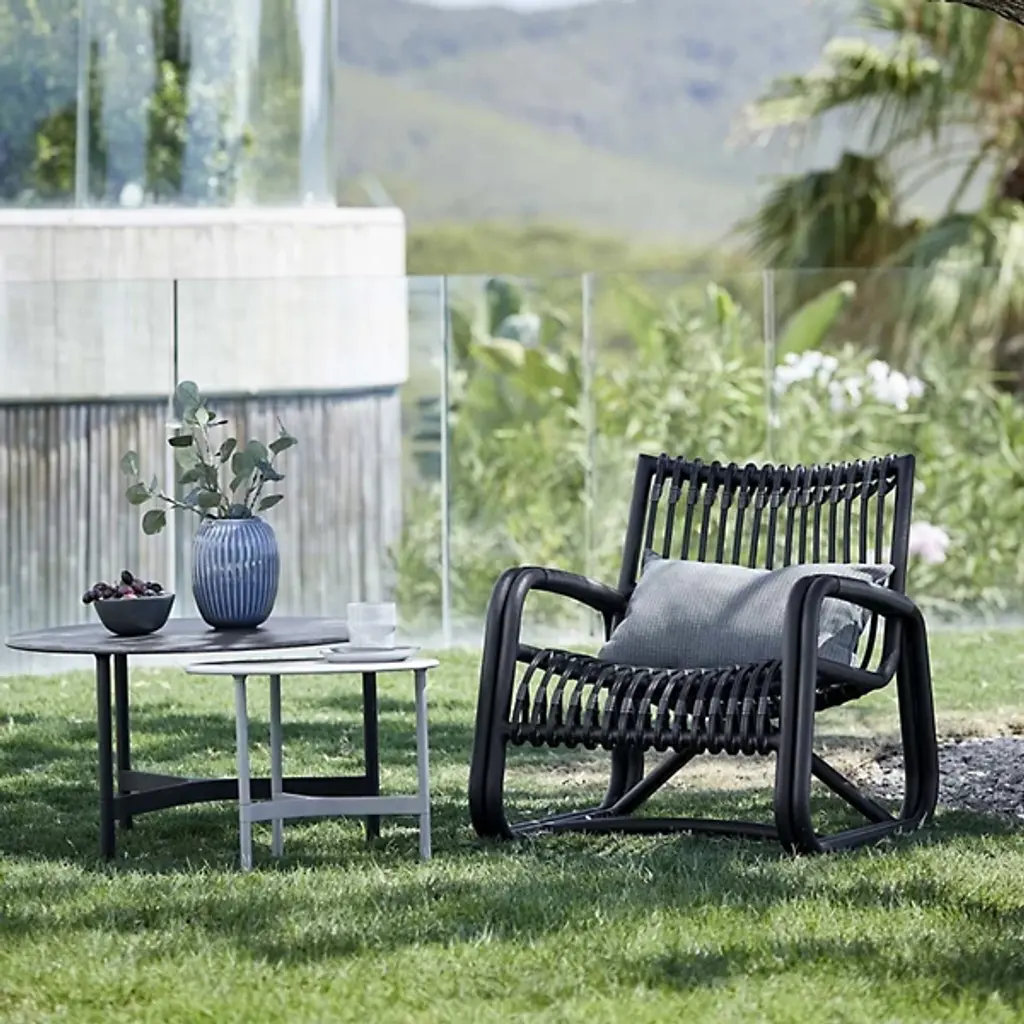 The Curve Outdoor Lounge Chair from Cane-line strikes the perfect balance between form and function, using its curves to meet the natural curves of your figure. Lay back and stretch out over the series of soft contours produced by the weather-resistant Cane-line weave. The cool lines mimic the rhythm of a wave, coming to crescendo then softening down. A woven design also supports your arms in a stylish modern touch. Its flanking framework keeps the piece anchored to the ground with a feeling of lightness.