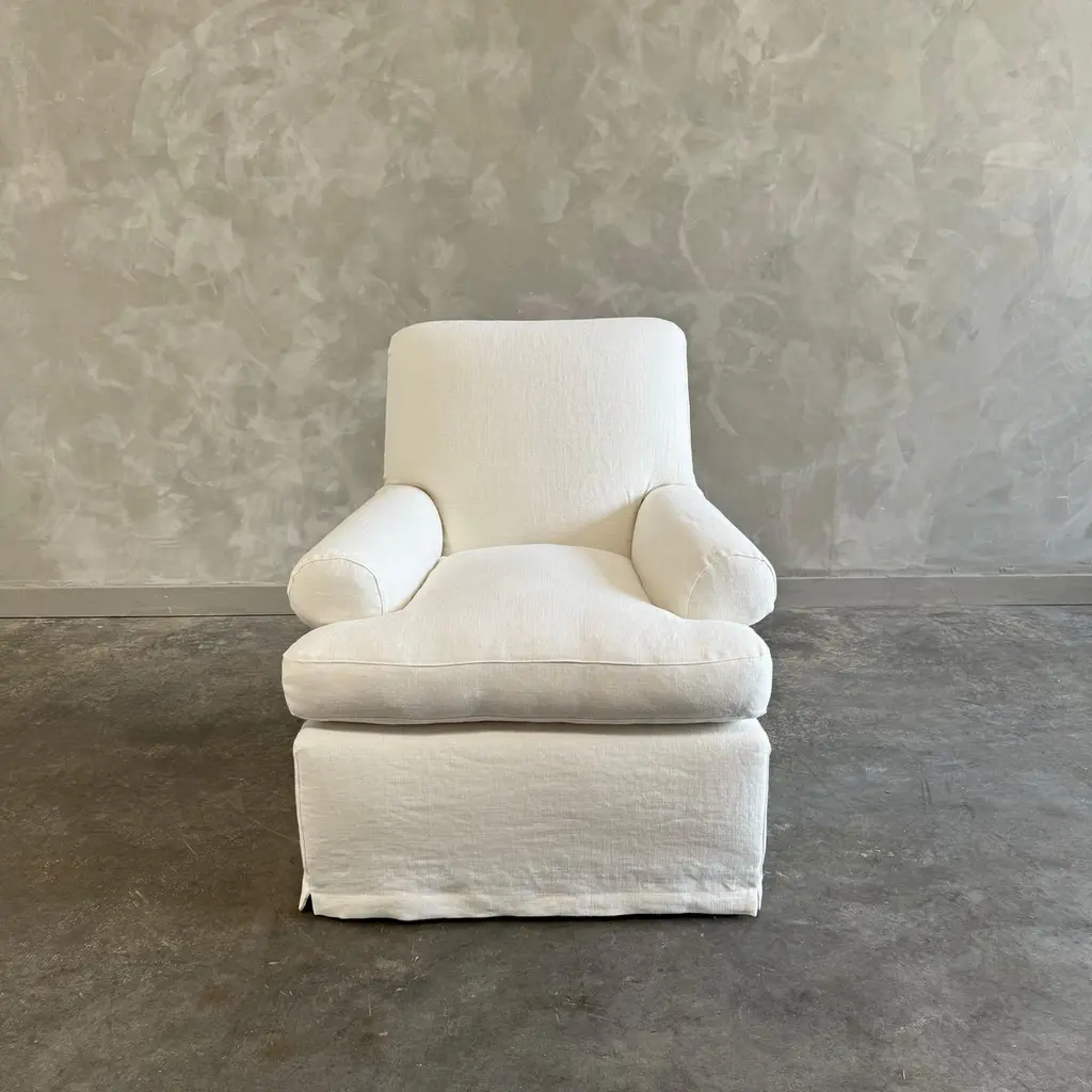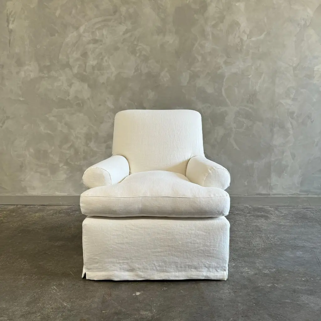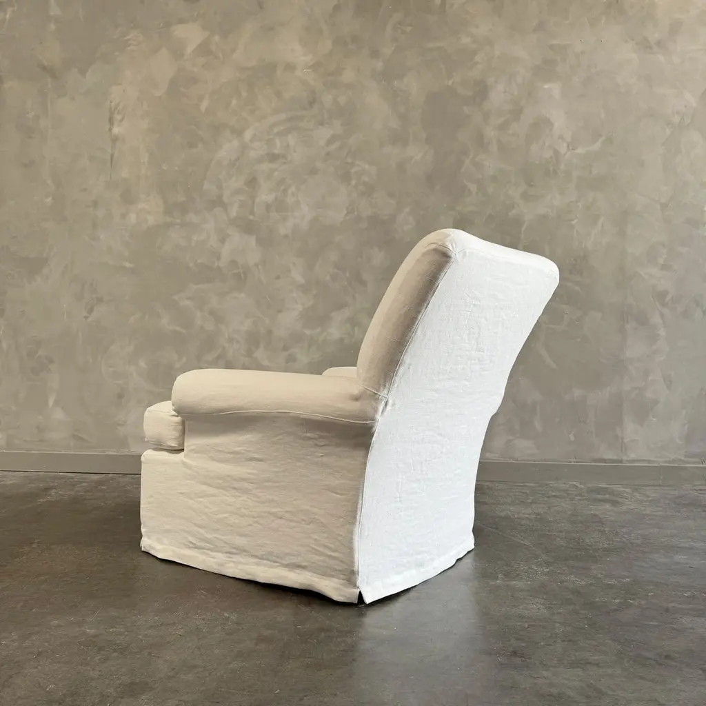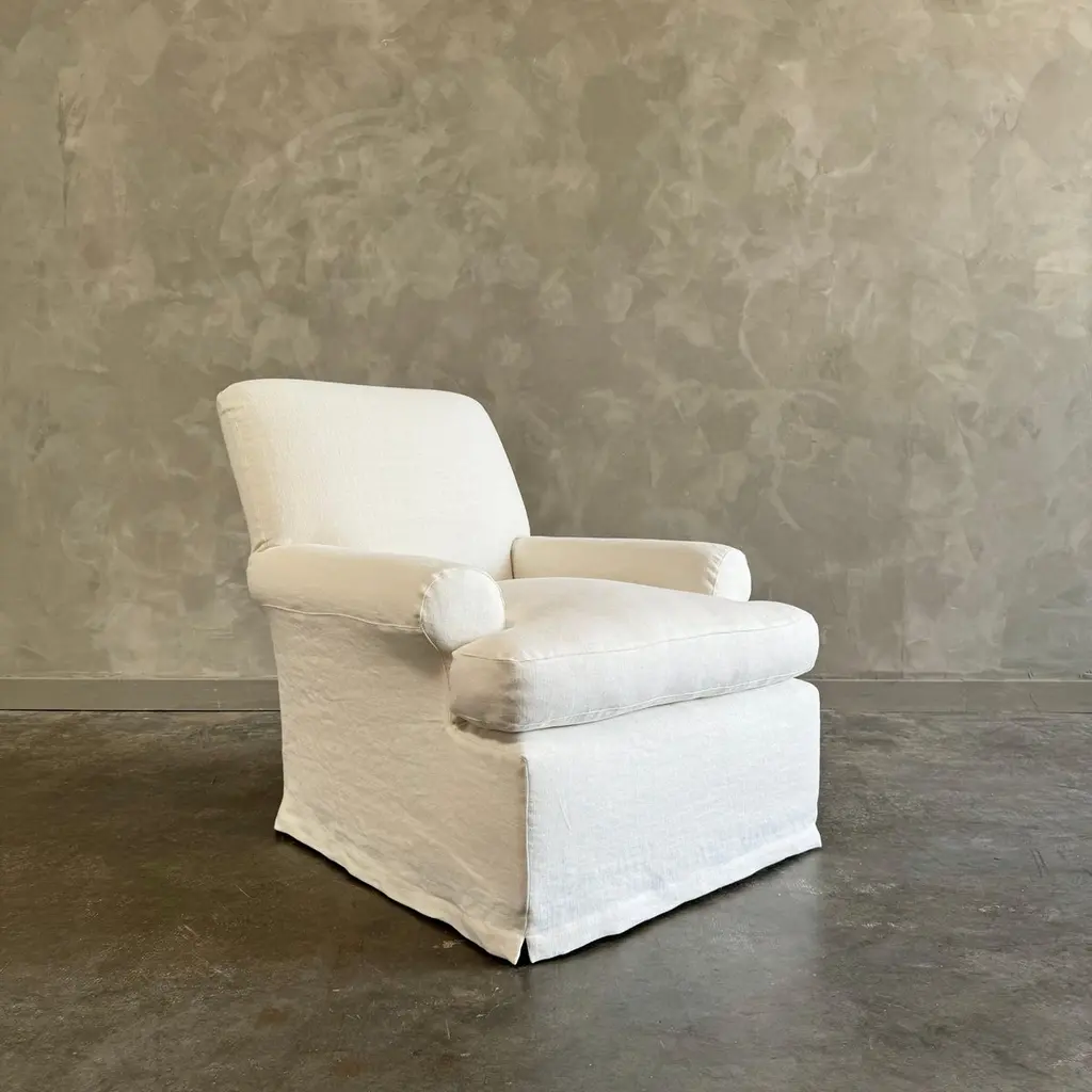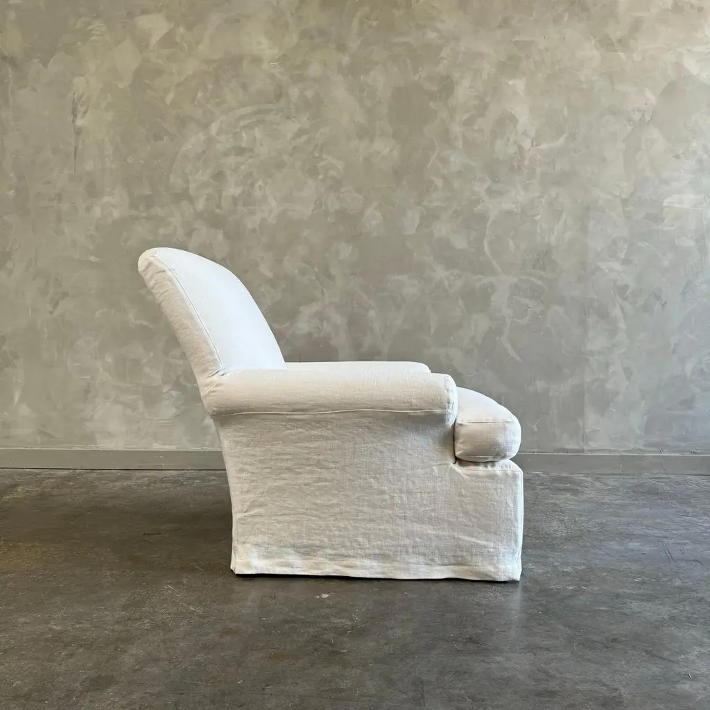 Custom Made To Order Belgian Linen Slip Cover Club Chair With Down Cushion