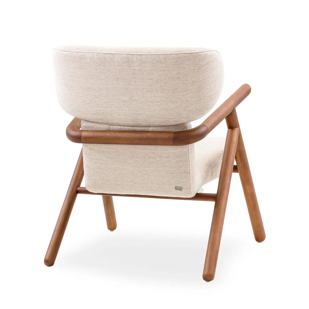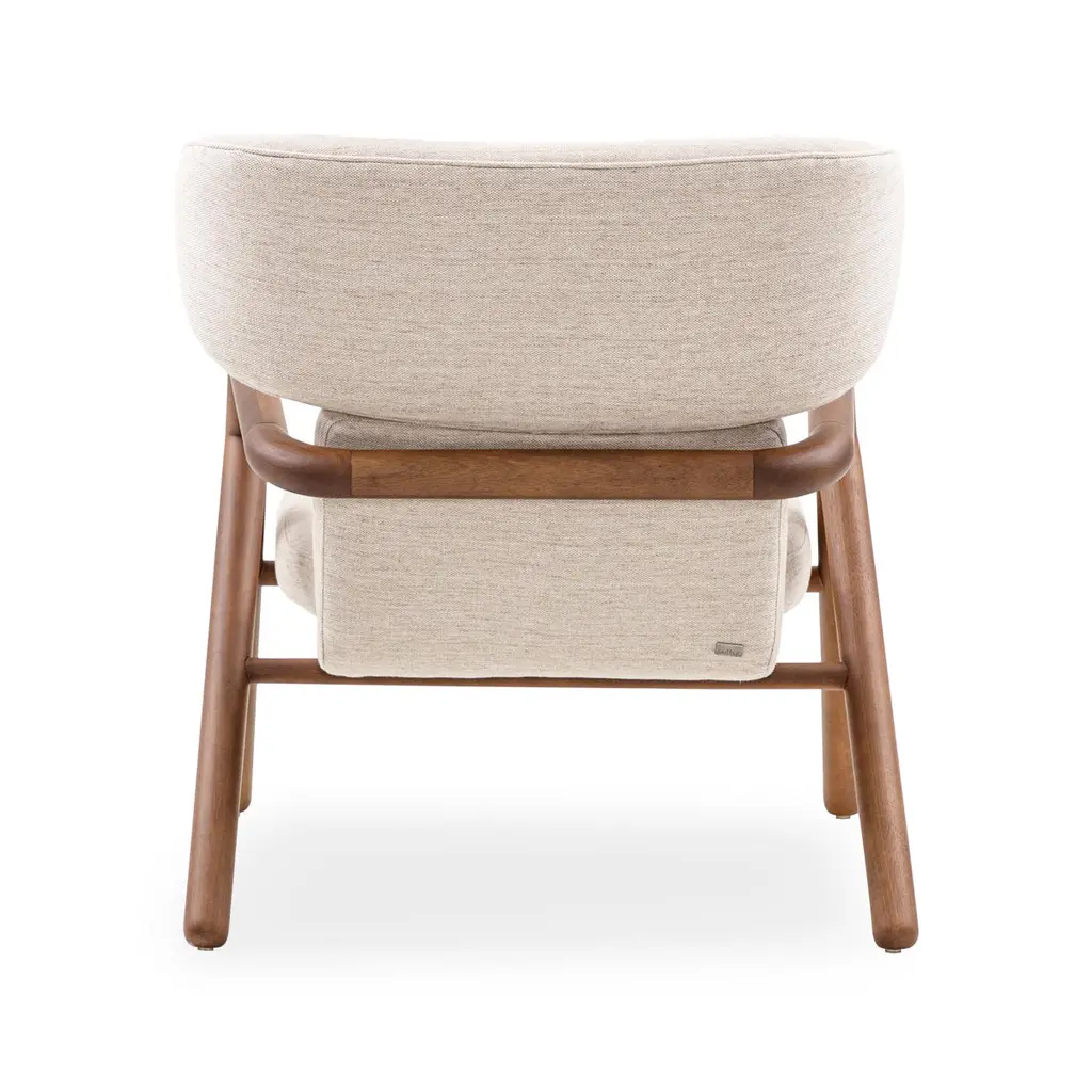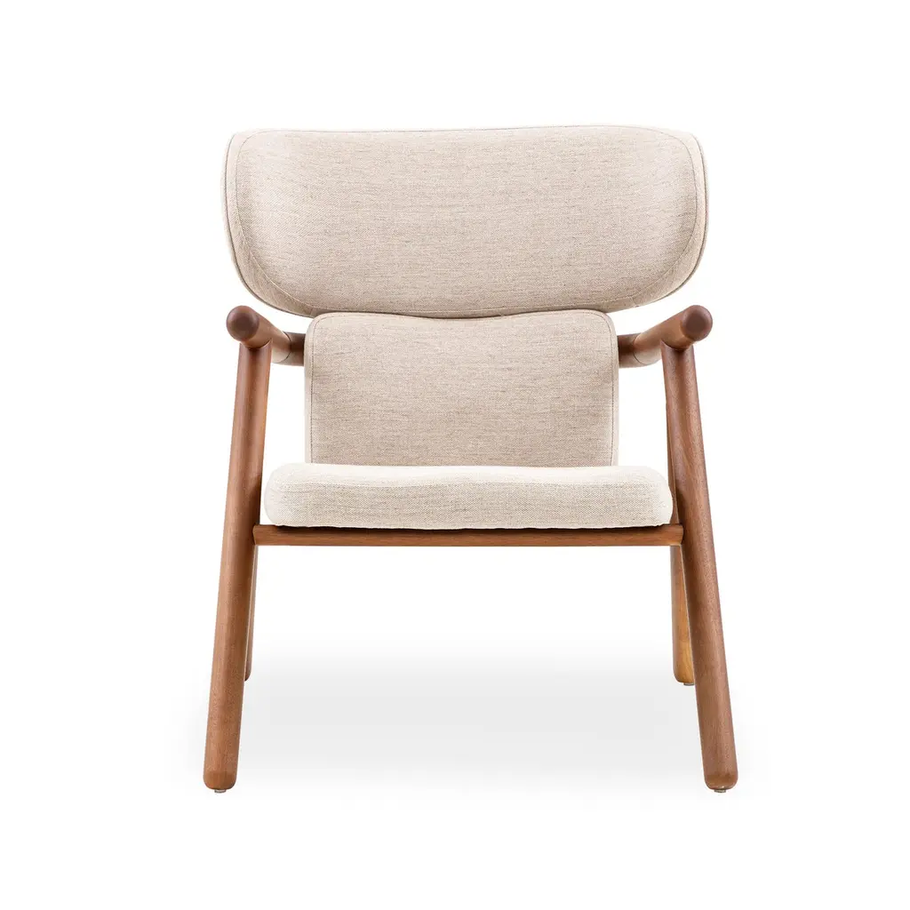 A Sole Scandinavian Modern style armchair designed by Larissa Batista for Uultis, with walnut finish and off-white fabric. Please check availability prior to purchase.The Sole armchair effortlessly embodies the Scandinavian modern aesthetic, combining timeless design with durable functionality. Crafted with a rich walnut wood finish frame, its multi-laminated construction offers both visual appeal and structural integrity. The Antique White Plain Weave upholstery adds a sophisticated touch with its subtle texture, making this chair a versatile addition to various interiors. Designed with firm comfort in mind, the seat and backrest provide exceptional support, ideal for extended use in both residential and commercial settings.Whether you're curating a cozy reading corner or seeking a refined accent for your living room, the Sole armchair enhances any space with its minimalist charm. Its streamlined silhouette and natural materials create a warm, inviting atmosphere, perfect for pairing with neutral-toned decor or contrasting darker wood finishes. Beyond the home, it serves as a stylish addition to office lounges, boutique waiting areas, or high-end hospitality environments.Thanks to its fully assembled delivery, the Sole armchair offers instant comfort and style, minimizing setup time. Its thoughtful construction ensures it remains a statement piece, combining the best of form, function, and sustainable design principles.
