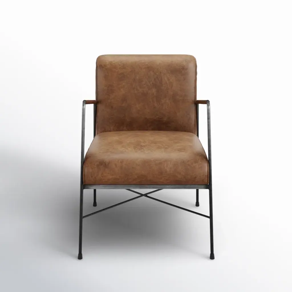 Accent your space with minimal, industrial design. A clean, comfortable addition to any decor, the Dagwood armchair ties together an earthy color palette with its warm top-grain leather and slim iron frame for a complete, modern look. In style with flexible intention to float from room to room, less is so clearly more with this occasional chair.