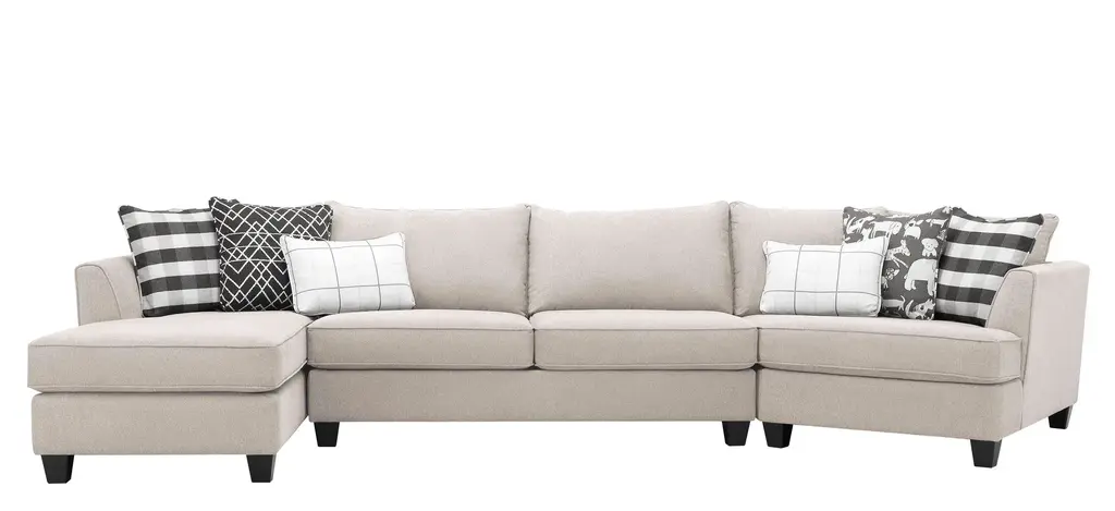 For a living room with style, comfort and spacious seating, the Daine collection will satisfy your needs. This sectional features upholstery that's both versatile and trendy. And, when it comes to comfort, Daine delivers with its huge seating area and extra accent pillows. With all these great features, you're in for a well-balanced room with character.