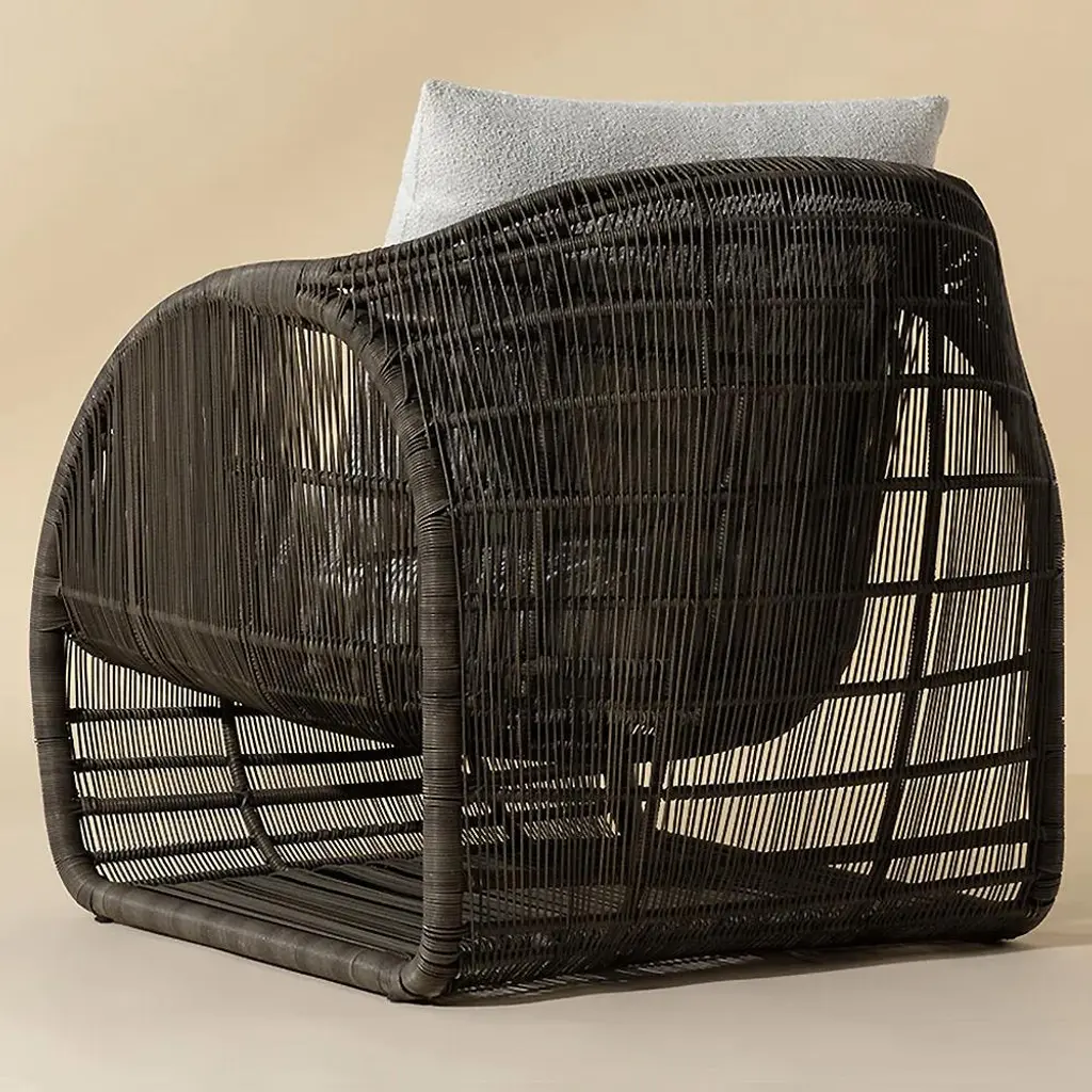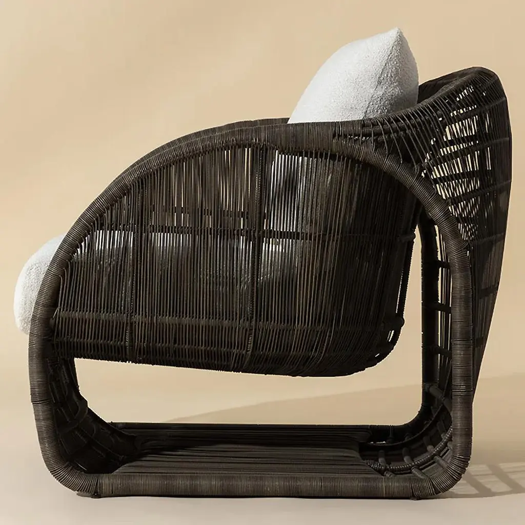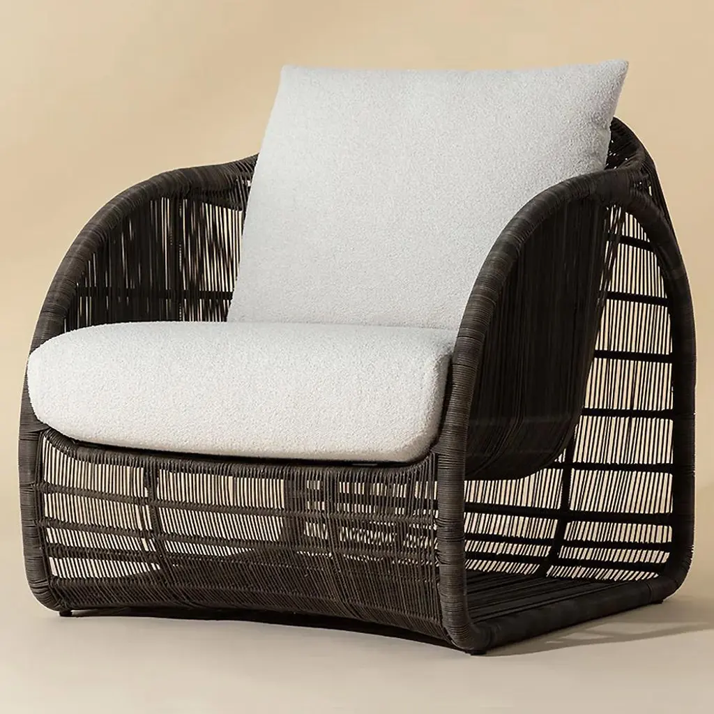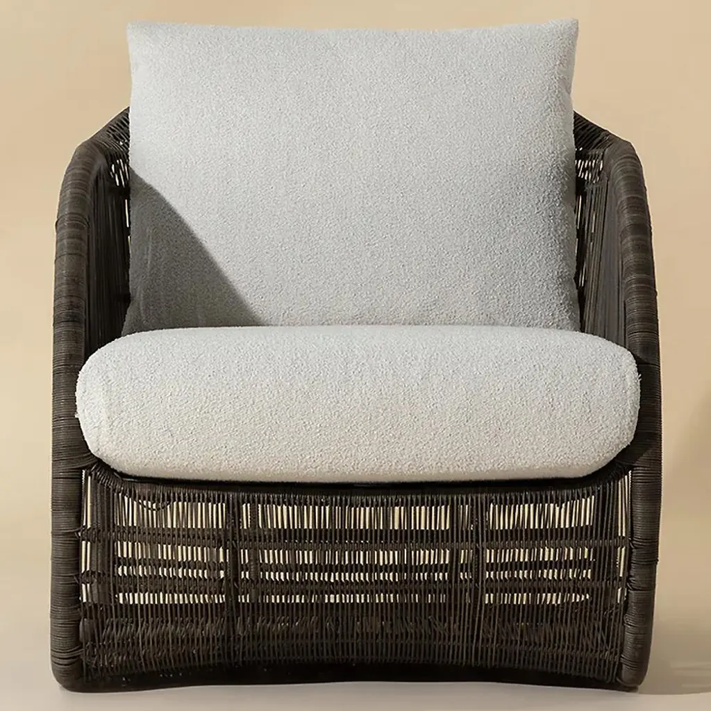 Danva Coastal Cream Boucle Ore Grey Weave Outdoor Lounge Chair