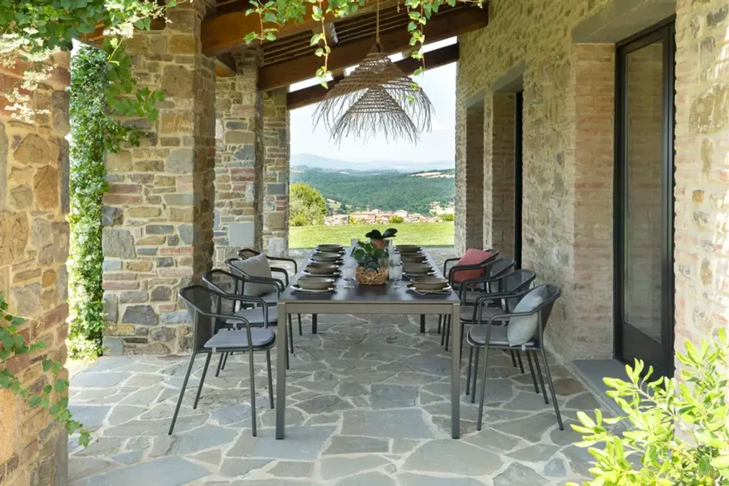 The ergonomic proportions and lightness of structural lines guarantee both comfort and functionality.Darwin is a steel collection, which revisits classic themes, in a delicate metal sheet mesh placed within a contemporary geometric structure. The Darwin range consists of chair, armchair, tables, barstool and counter table, sofa, lounge chair and coffee table. Defined by its exceptional style, Darwin is suited to all kinds of furnishing contexts.Available colours: antique iron, matt white, black, grey, Indian brown, scarlet red.