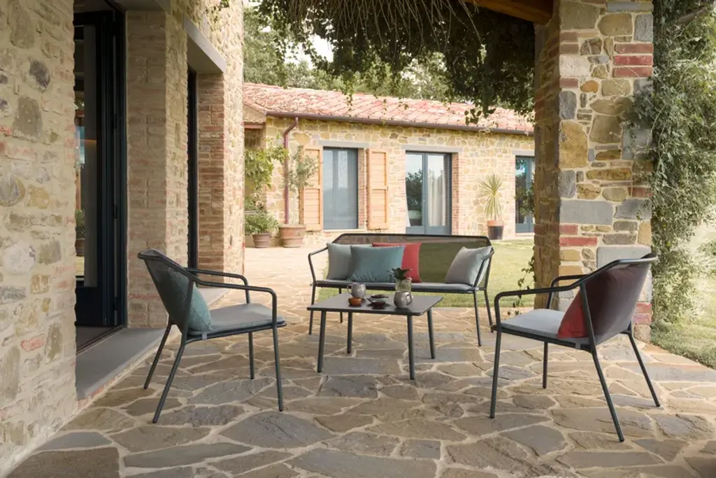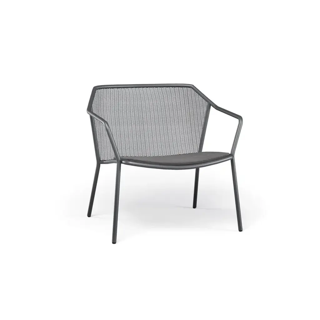 The ergonomic proportions and lightness of structural lines guarantee both comfort and functionality.Darwin is a steel collection, which revisits classic themes, in a delicate metal sheet mesh placed within a contemporary geometric structure. The Darwin range consists of chair, armchair, tables, barstool and counter table, sofa, lounge chair and coffee table. Defined by its exceptional style, Darwin is suited to all kinds of furnishing contexts.Available colours: antique iron, matt white, black, grey, Indian brown, scarlet red.