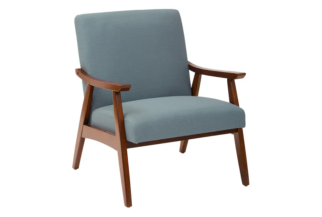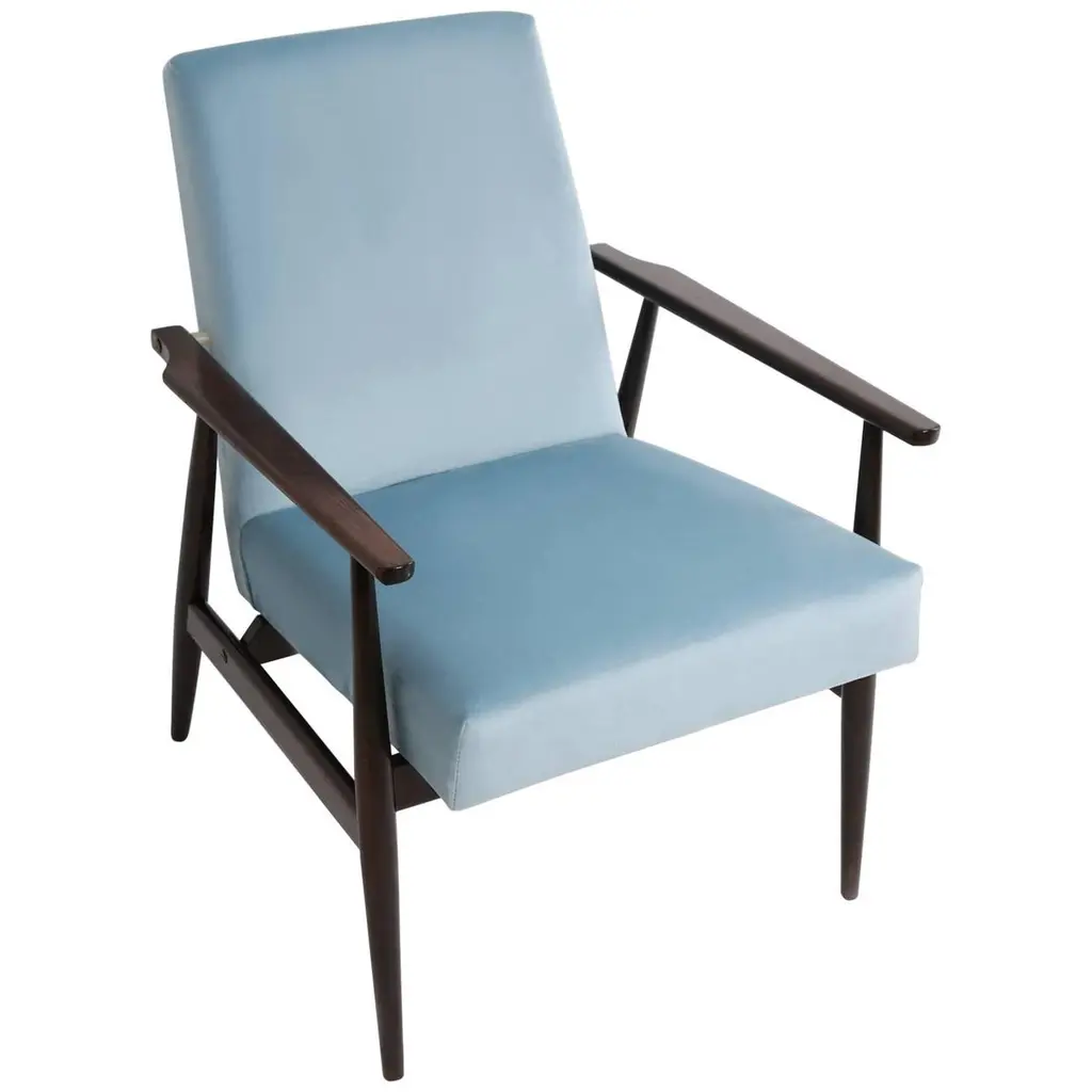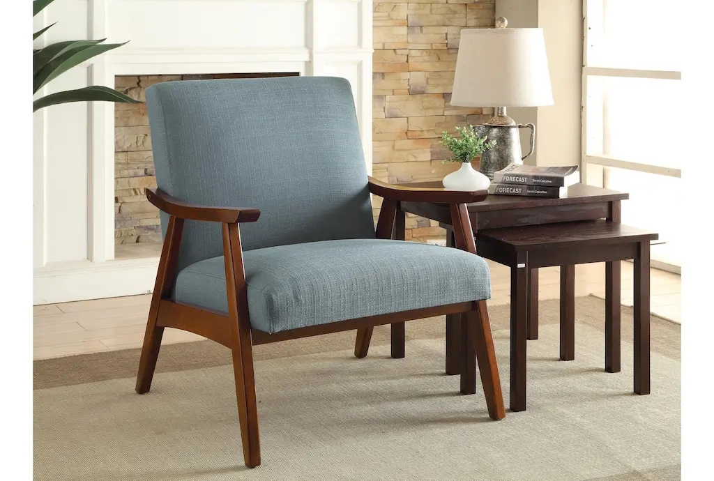 Davis Klein Sea Blue Fabric Arm Chair with Medium Espresso Frame