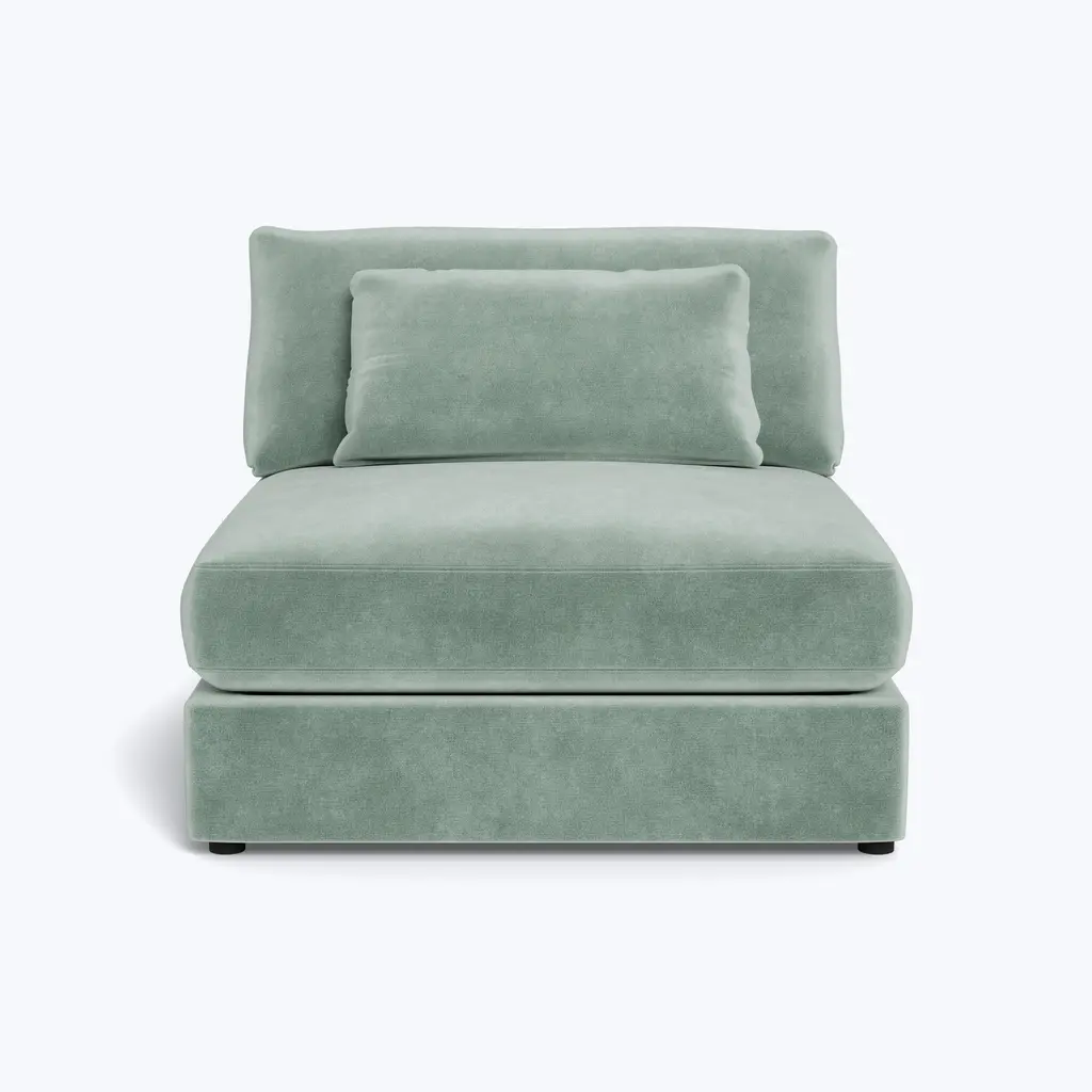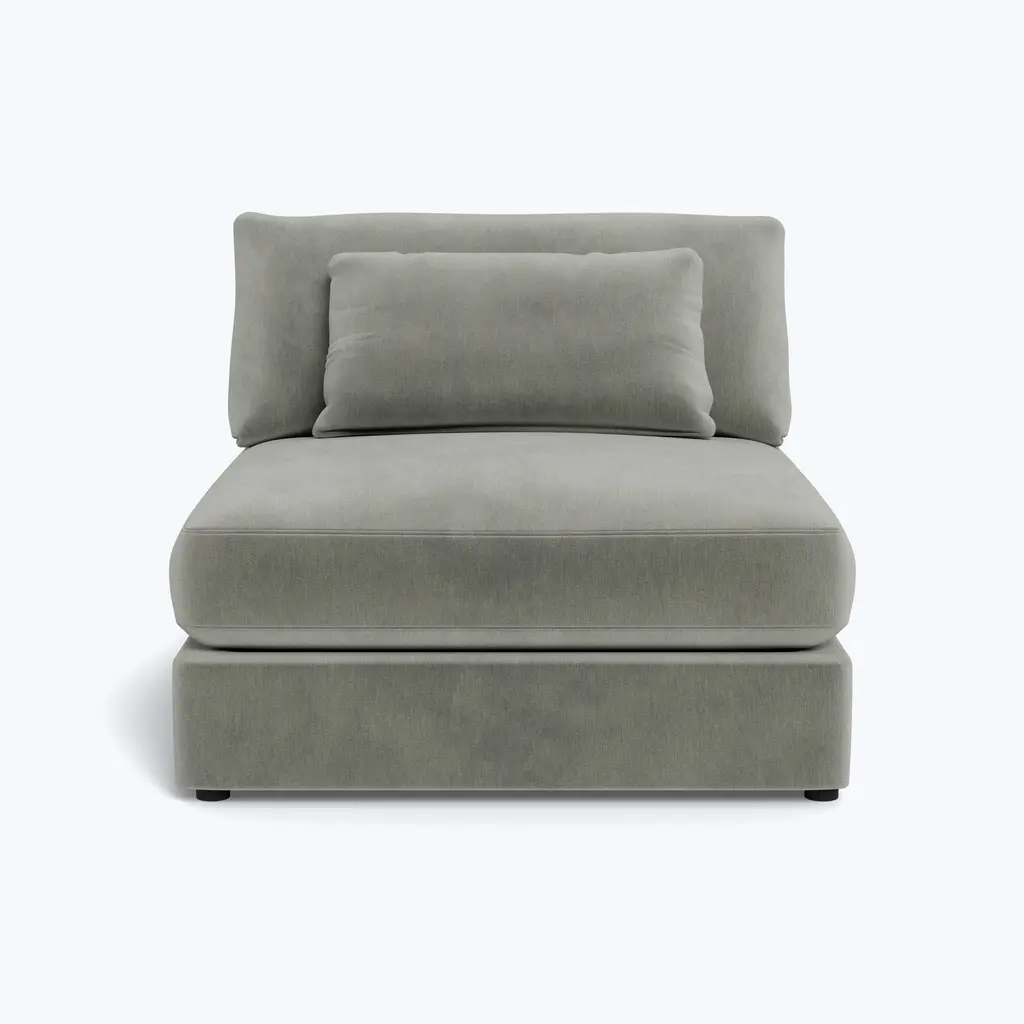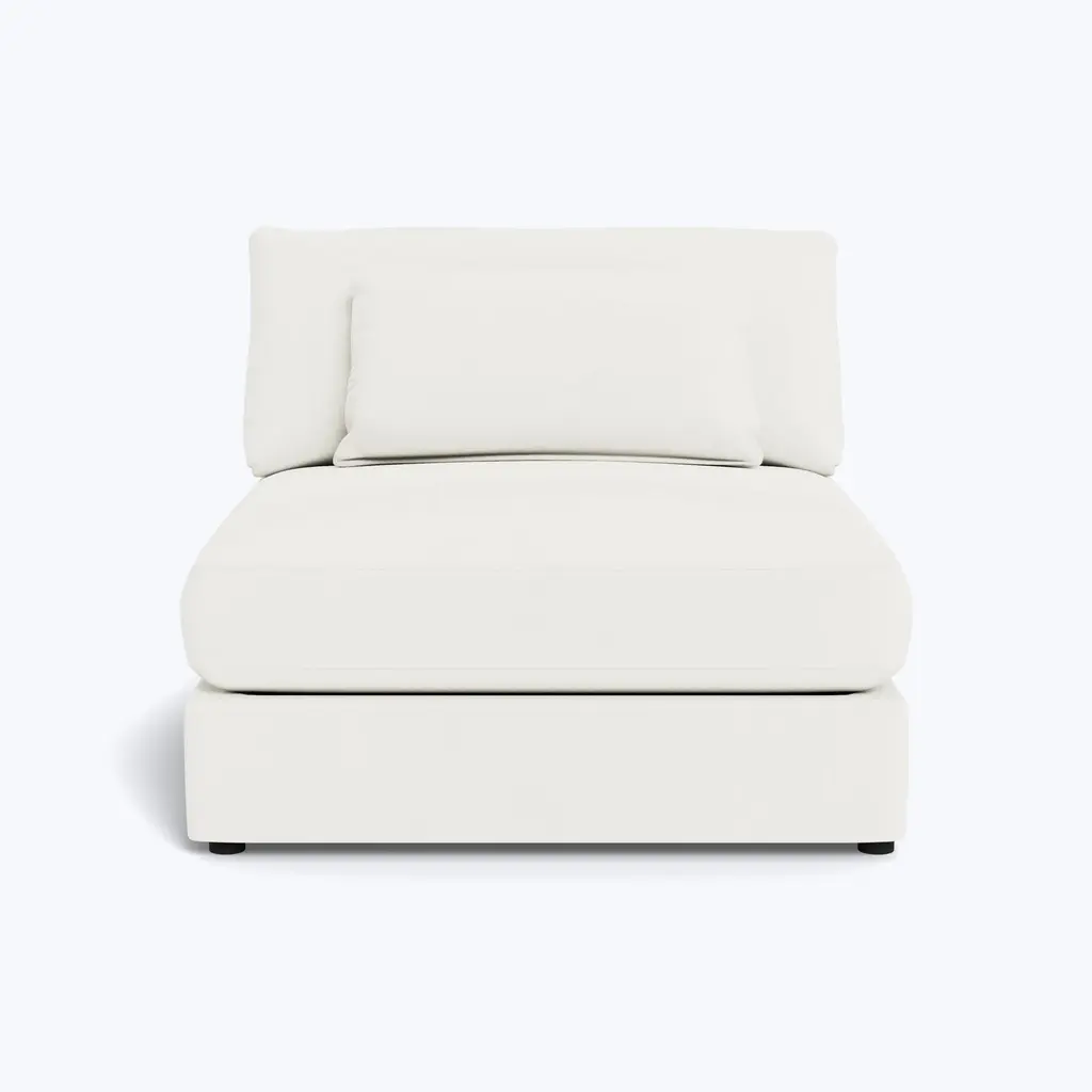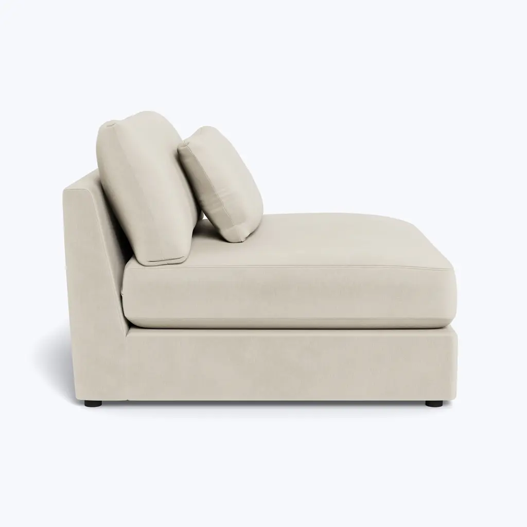 Sink into unparalleled comfort with the Delancey Armless Chair, exclusively from ABC Carpet & Home. Whether as a stand-alone piece in your living room, bedroom, or reading nook, or as an extension to your Delancey Sectional, this armless chair is designed with deep seating and plush cushions, offering a cozy, versatile seating option for any space.Perched atop a sleek floating base, the Delancey Armless Chair provides unmatched comfort with its blend-down cushions—a refined mix of foam and feather-down, meticulously washed to hypoallergenic standards. Whether you're using it as a stylish accent chair or incorporating it into your sectional, this chair ensures you can sink into softness with ease. Crafted from sustainably sourced wood that meets ABC's Goodwood Standards, it offers both eco-conscious design and luxurious comfort.Customize your Delancey Armless Chair with over 80 fabric options, including velvets, high-performance textiles, and luxurious blends, to match your personal style. Handcrafted in the USA, each piece is made to order and delivered within 8-10 weeks.For a complete look, pair it with other pieces from the Delancey Collection, such as the Delancey Ottoman, which adds additional seating, a footrest, or a coffee table to your setup. Create a space that’s both functional and stylish with the Delancey Armless Chair—a piece that offers timeless design and luxurious comfort.