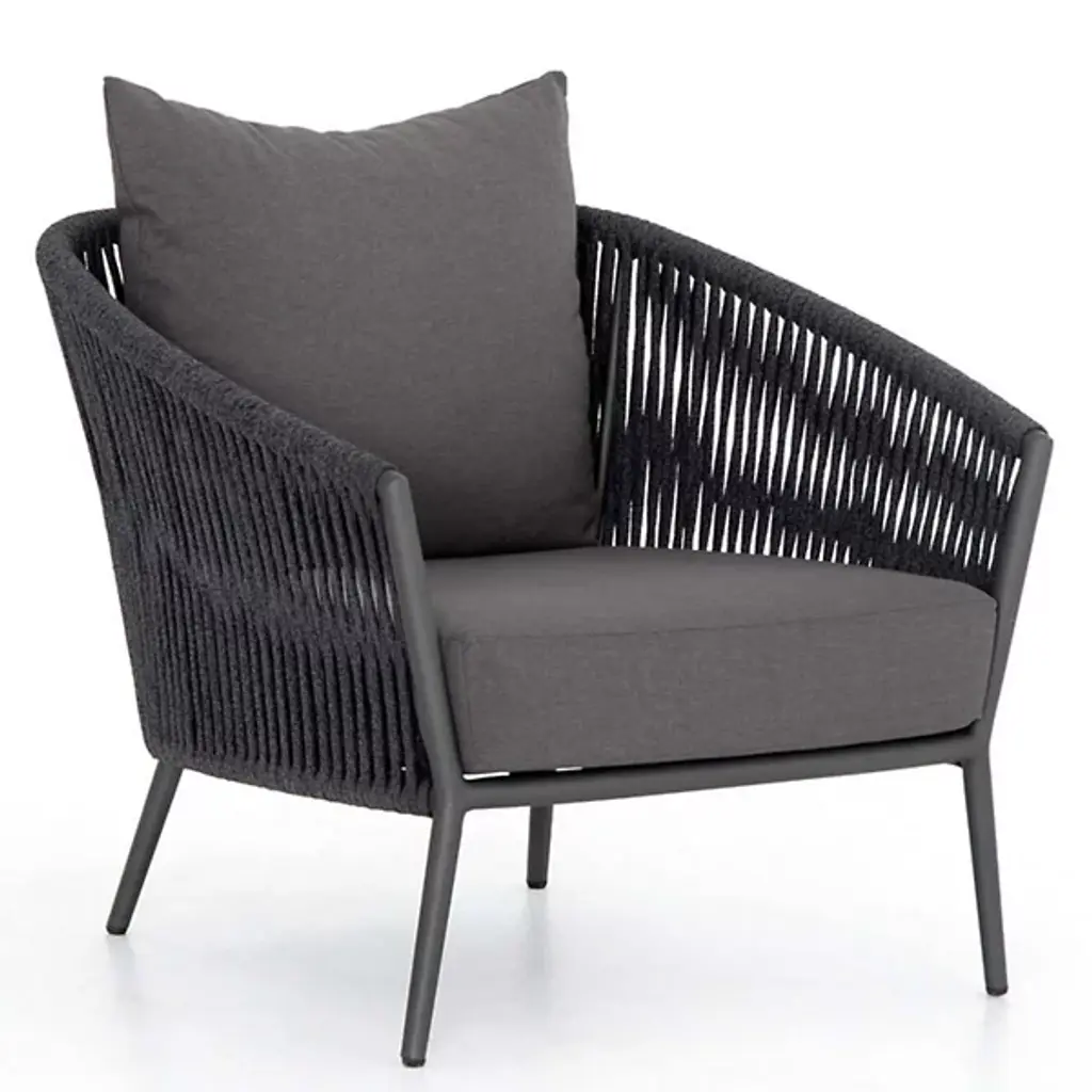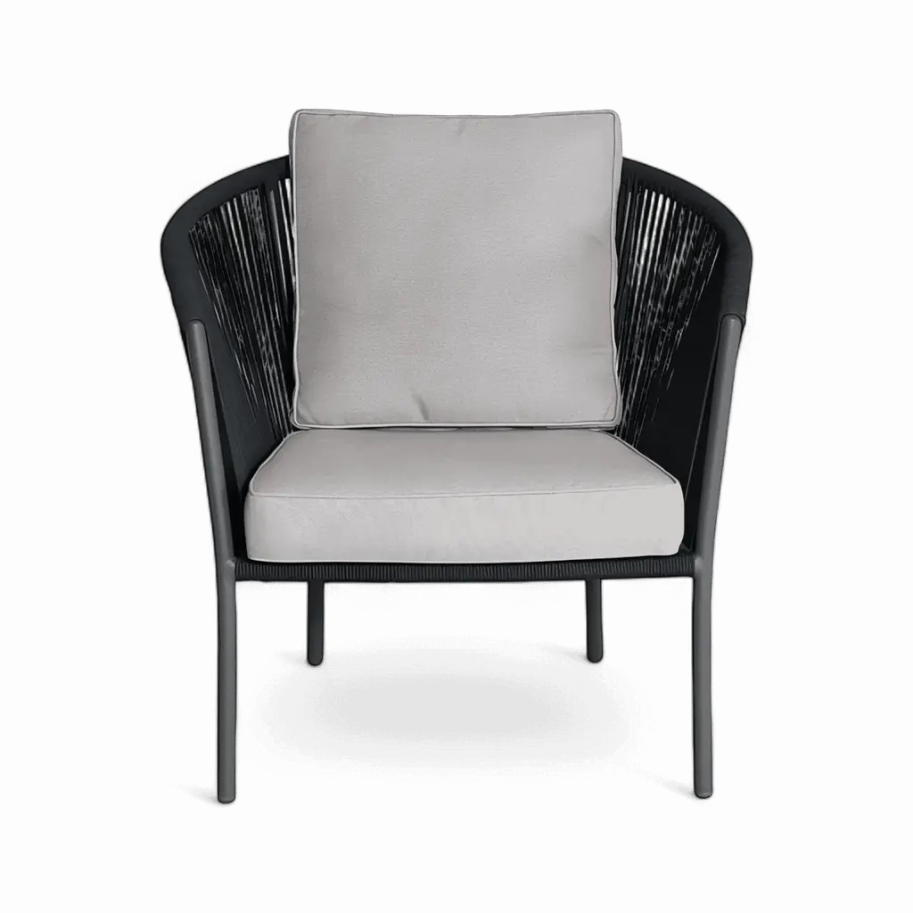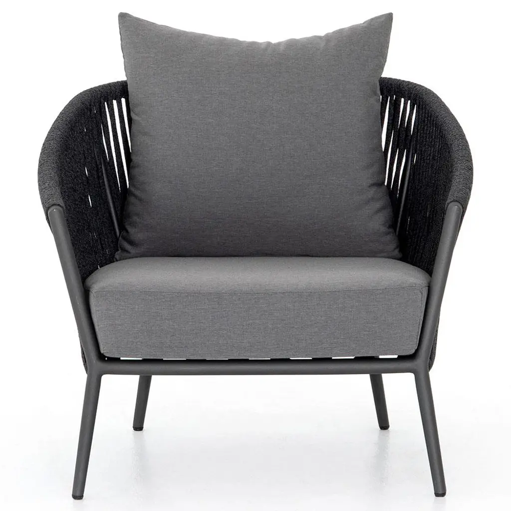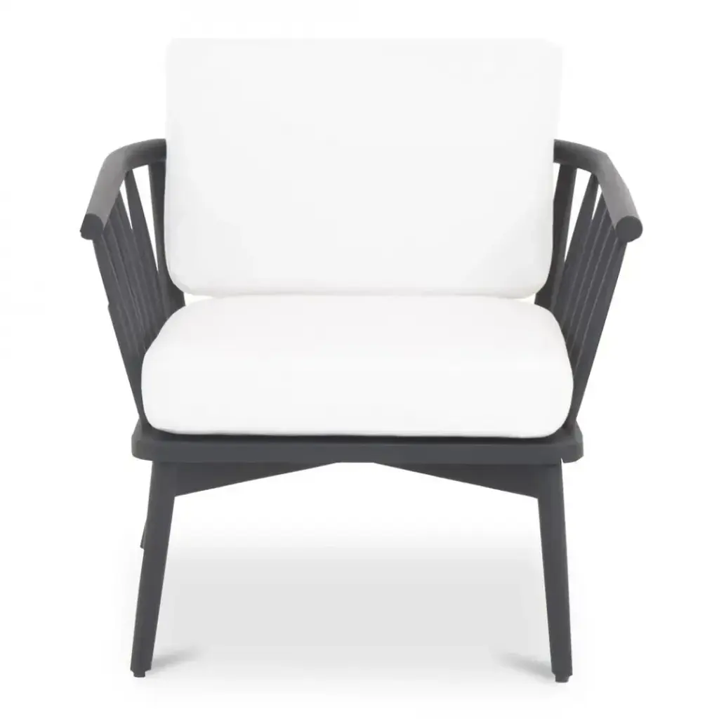 Delaney is a minimalist modern outdoor lounge chair featuring a clean design with soft, curved lines. The sturdy metal construction and durable outdoor upholstery ensure long-lasting comfort and style for your outdoor living space.