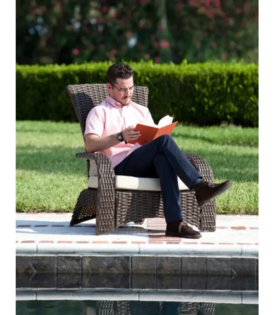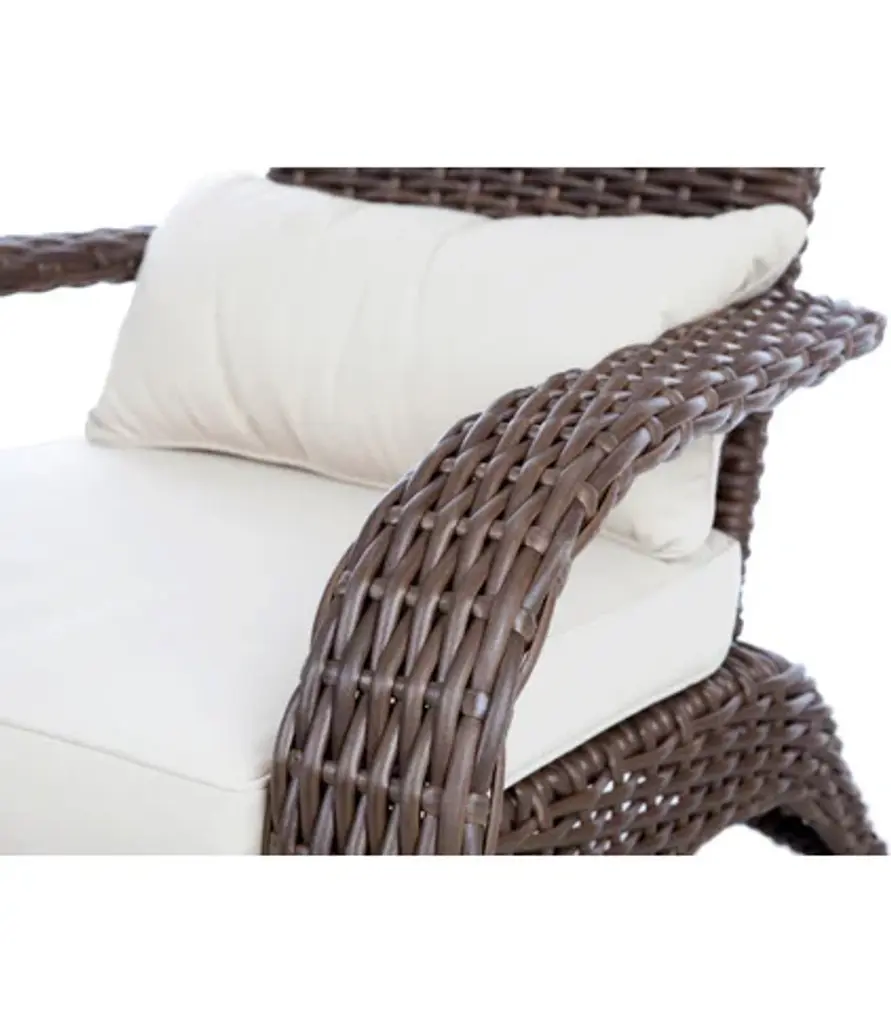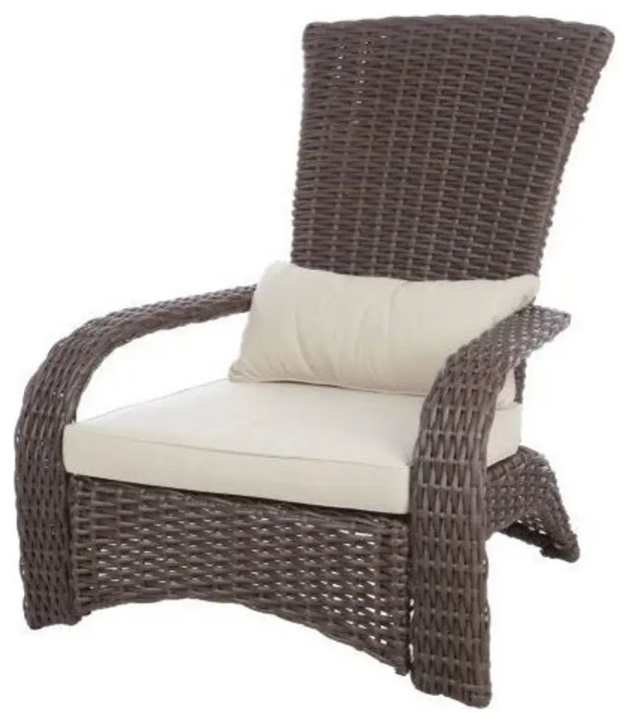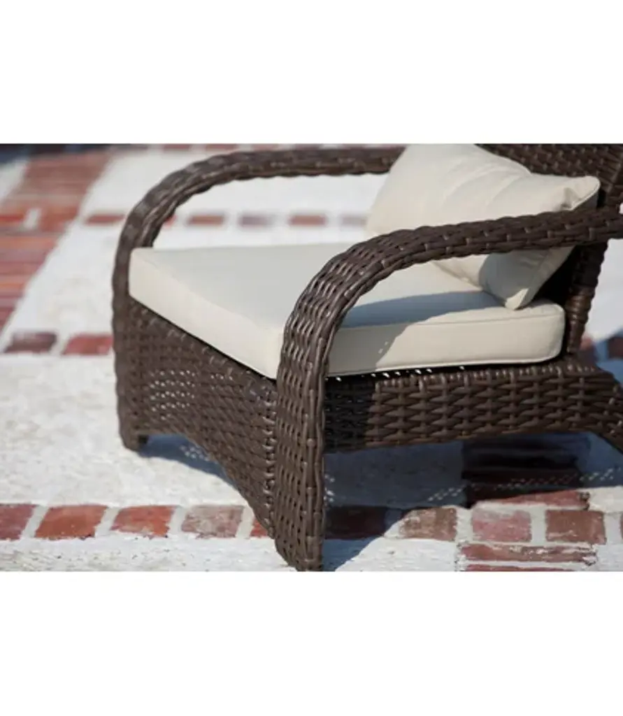 Our new Deluxe Coconino Wicker Chair is constructed of all weather half-round wicker and includes a 3" thick beige cushion. This lightweight yet durable Adirondack style chair is perfect for enjoying an evening on the patio or relaxing by the poolside. The attractive mocha finish is the perfect accent for any patio. Our wicker chair can be used all year round and provides a maintenance free outdoor seating experience.