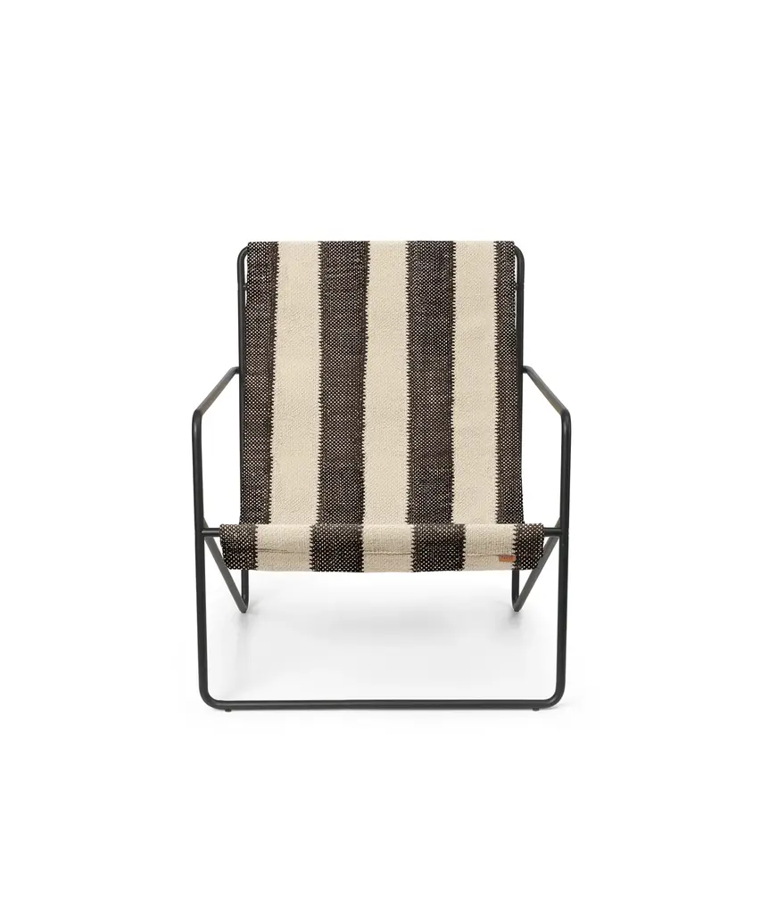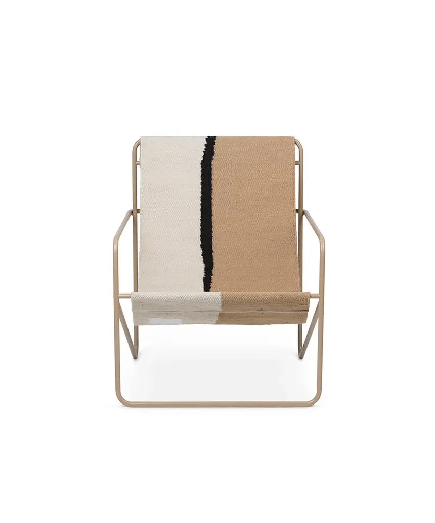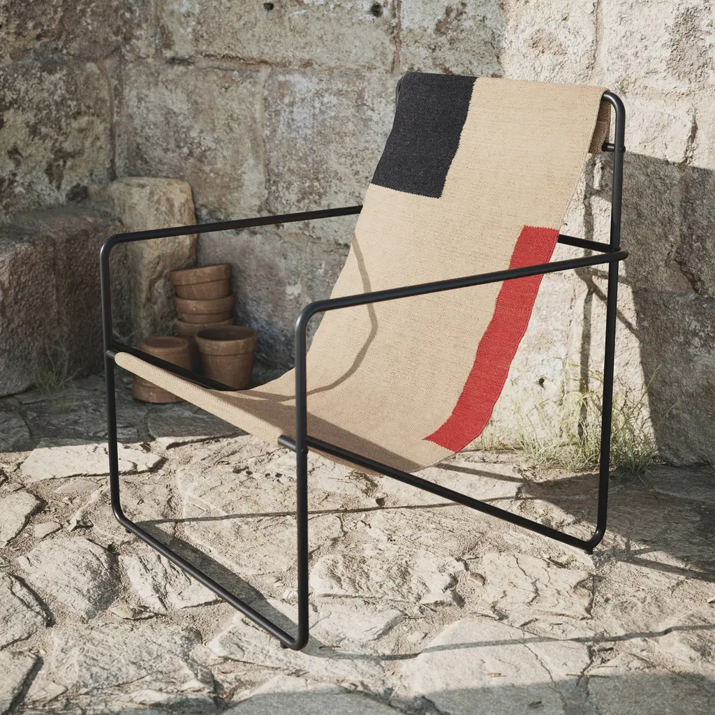 Sit back and relax while also feeling pleased to know that the comfy sling seat of this lounge chair is actually woven of a fiber derived from 53 recycled plastic bottles. Suitable for use both indoors and out, Desert is crafted with a coated tubular steel frame in powder-coated colors. The interchangeable textile seat is available in 4 pattern variations: Soil, Stripes, Shapes or Solid Cashmere.