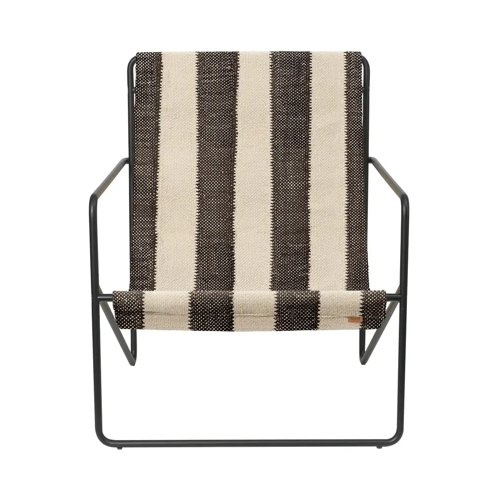 Sit back and relax while also feeling pleased to know that the comfy sling seat of this lounge chair is actually woven of a fiber derived from 53 recycled plastic bottles. Suitable for use both indoors and out, Desert is crafted with a coated tubular steel frame in powder-coated colors. The interchangeable textile seat is available in 4 pattern variations: Soil, Stripes, Shapes or Solid Cashmere.