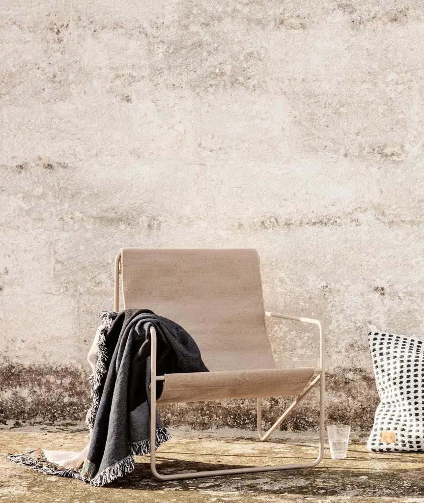 A modernist chair with a graceful profile, the Desert Lounge Chair is crafted from a tubular powder coated steel frame, holding an interchangeable woven textile seat made entirely from recycled plastic bottles. Suitable for use both indoors and out, the lounge design invites relaxation. This Desert Chair is made from a powder-coated metal that has been given an anti-rust treatment, and is suitable for outdoor use. Do be aware, however, that just as with any metal, prolonged outdoor use and exposure to the elements will cause the Desert Chair to develop rust over time. We therefore advise you to bring your Desert Chair inside during cold weather – particularly if the temperature drops below freezing.