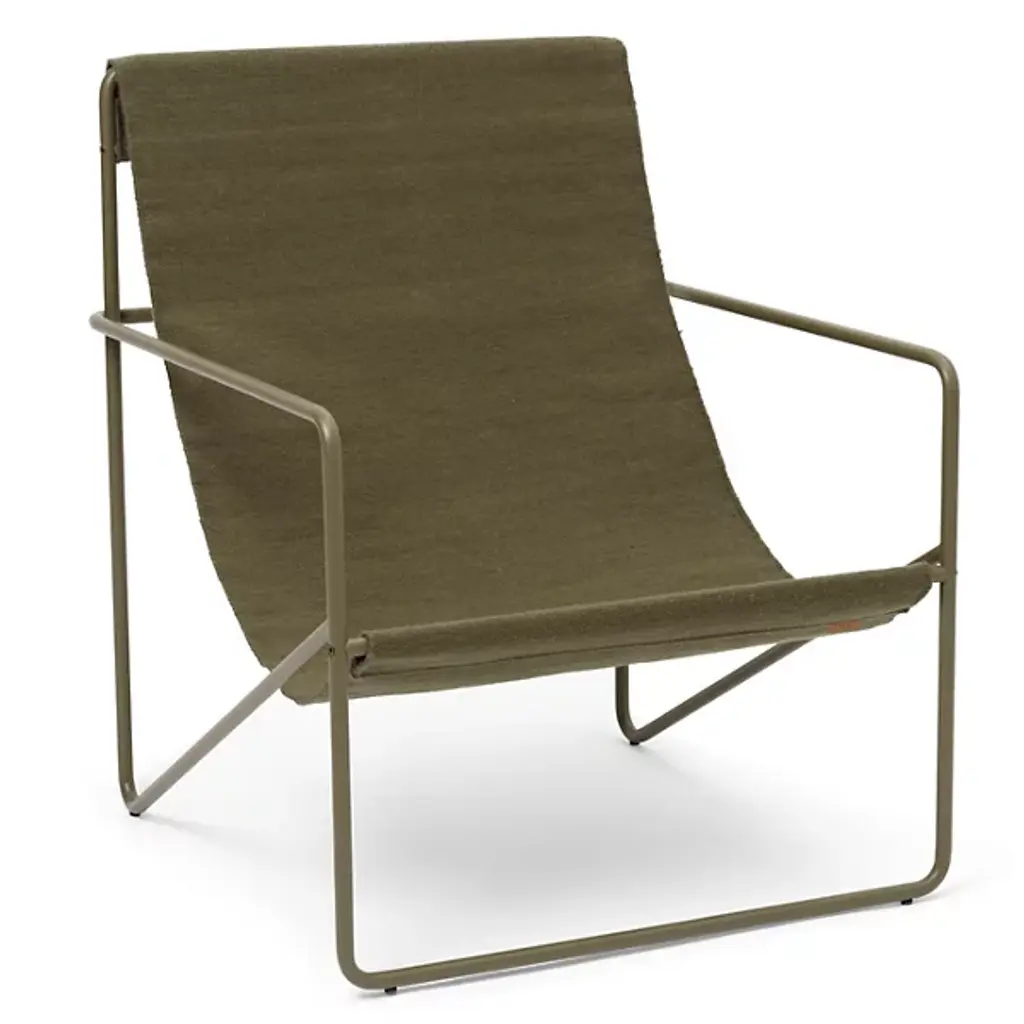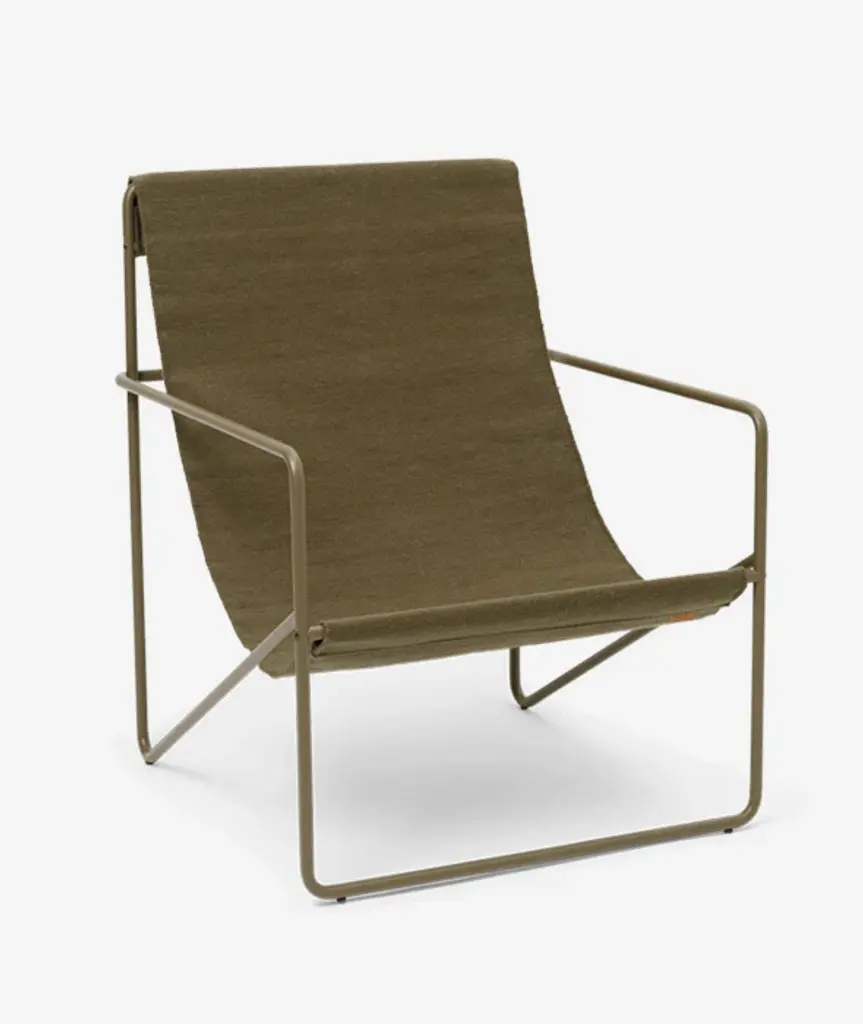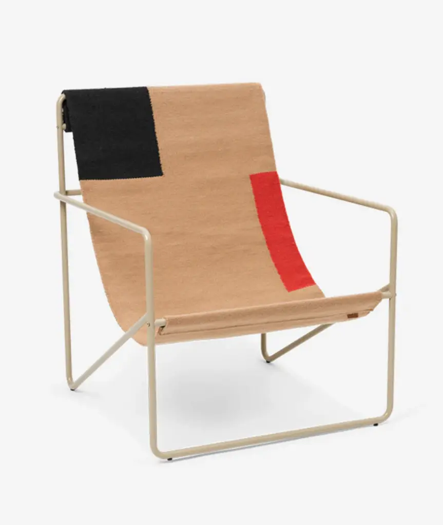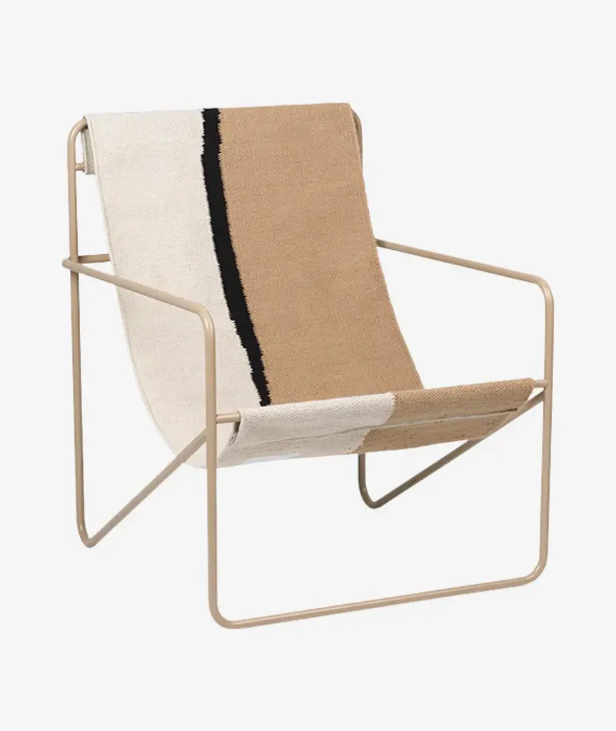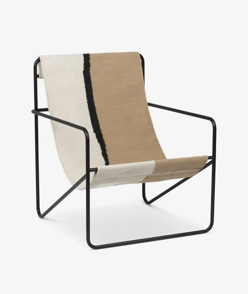 A modernist chair with a graceful profile, the Desert Lounge Chair is crafted from a tubular powder coated steel frame, holding an interchangeable woven textile seat made entirely from recycled plastic bottles. Suitable for use both indoors and out, the lounge design invites relaxation. This Desert Chair is made from a powder-coated metal that has been given an anti-rust treatment, and is suitable for outdoor use. Do be aware, however, that just as with any metal, prolonged outdoor use and exposure to the elements will cause the Desert Chair to develop rust over time. We therefore advise you to bring your Desert Chair inside during cold weather – particularly if the temperature drops below freezing.