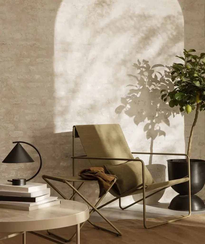 A modernist chair with a graceful profile, the Desert Lounge Chair is crafted from a tubular powder coated steel frame, holding an interchangeable woven textile seat made entirely from recycled plastic bottles. Suitable for use both indoors and out, the lounge design invites relaxation. This Desert Chair is made from a powder-coated metal that has been given an anti-rust treatment, and is suitable for outdoor use. Do be aware, however, that just as with any metal, prolonged outdoor use and exposure to the elements will cause the Desert Chair to develop rust over time. We therefore advise you to bring your Desert Chair inside during cold weather – particularly if the temperature drops below freezing.