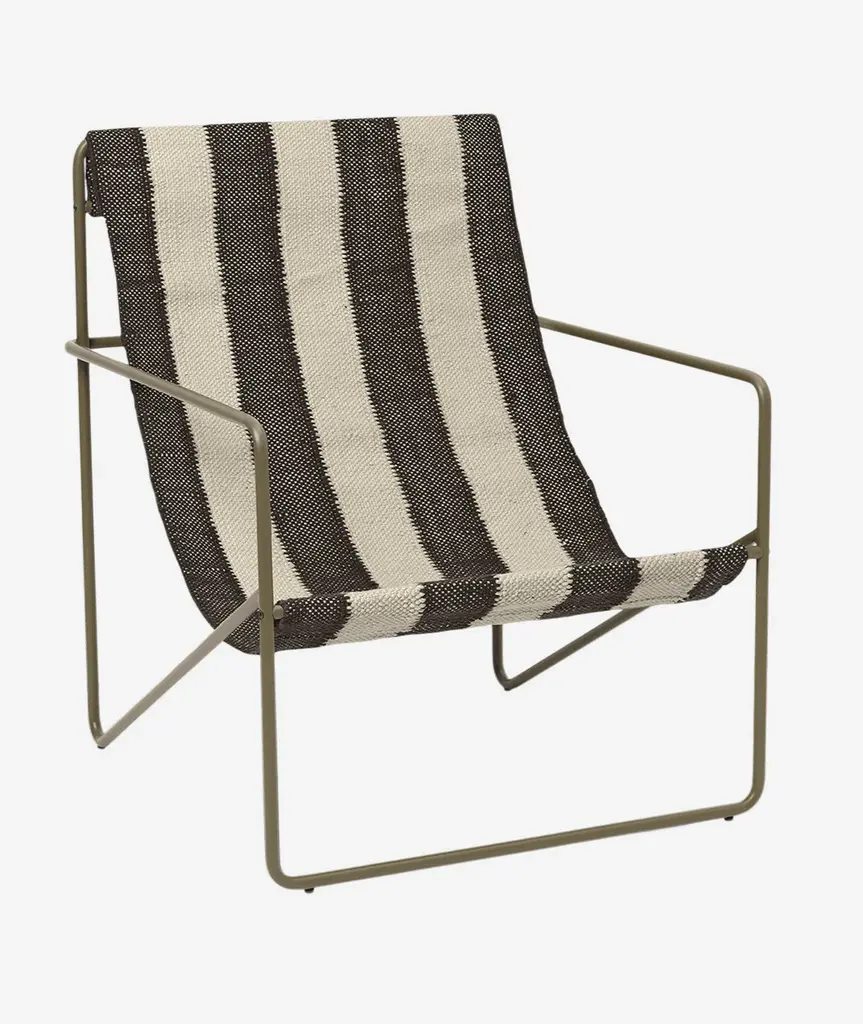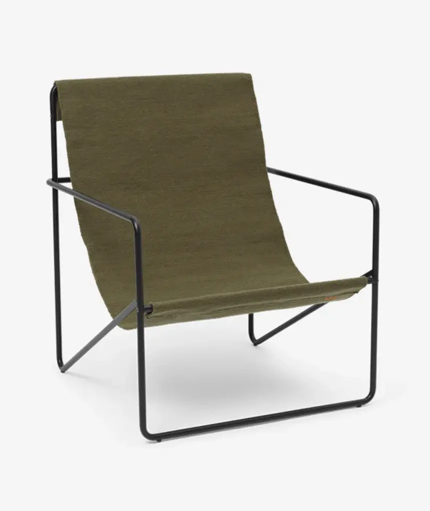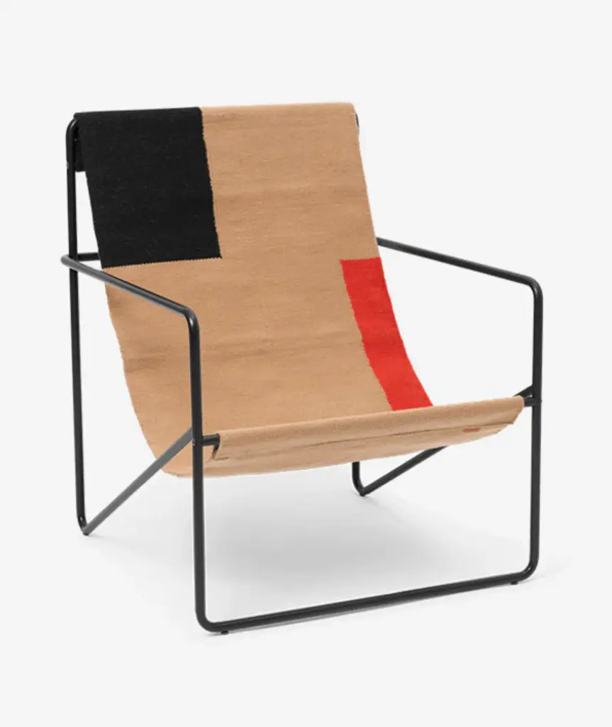 A modernist chair with a graceful profile, the Desert Lounge Chair is crafted from a tubular powder coated steel frame, holding an interchangeable woven textile seat made entirely from recycled plastic bottles. Suitable for use both indoors and out, the lounge design invites relaxation. This Desert Chair is made from a powder-coated metal that has been given an anti-rust treatment, and is suitable for outdoor use. Do be aware, however, that just as with any metal, prolonged outdoor use and exposure to the elements will cause the Desert Chair to develop rust over time. We therefore advise you to bring your Desert Chair inside during cold weather – particularly if the temperature drops below freezing.