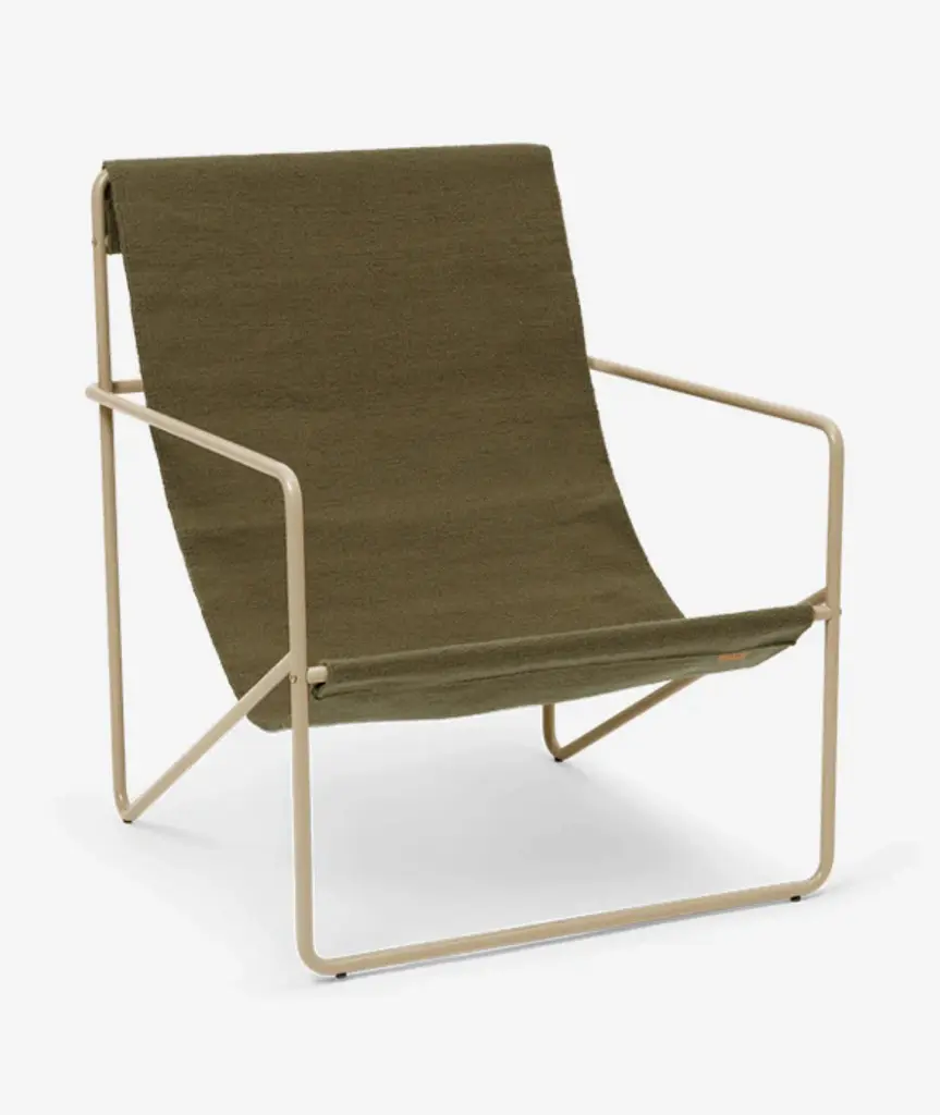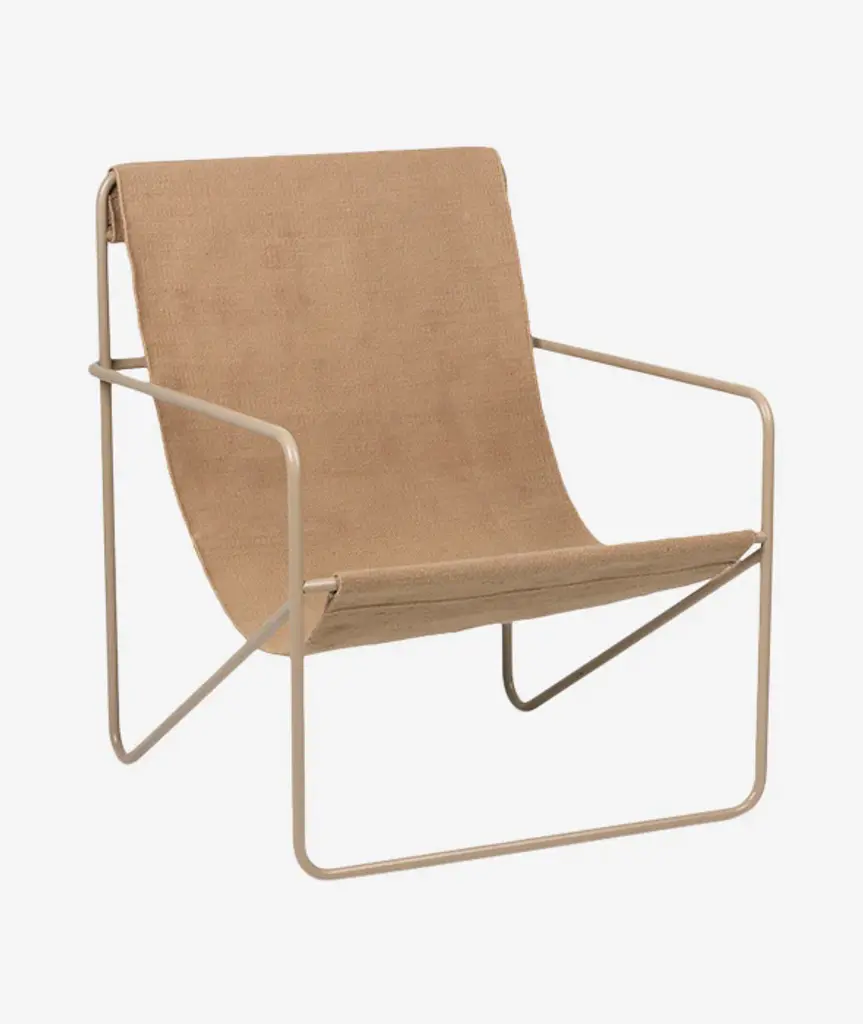 A modernist chair with a graceful profile, the Desert Lounge Chair is crafted from a tubular powder coated steel frame, holding an interchangeable woven textile seat made entirely from recycled plastic bottles. Suitable for use both indoors and out, the lounge design invites relaxation. This Desert Chair is made from a powder-coated metal that has been given an anti-rust treatment, and is suitable for outdoor use. Do be aware, however, that just as with any metal, prolonged outdoor use and exposure to the elements will cause the Desert Chair to develop rust over time. We therefore advise you to bring your Desert Chair inside during cold weather – particularly if the temperature drops below freezing.
