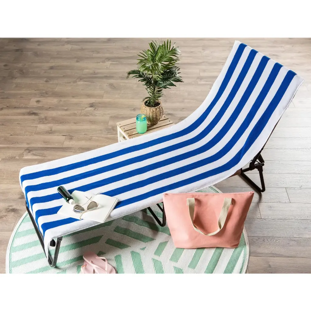Design Imports Blue Stripe Lounge Chair Beach Towel With Top Fitted Pocket 26x82